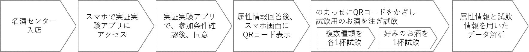 「名酒センター」に入店後、本実証実験アプリにスマートフォンからアクセスし、参加条件を確認して参加