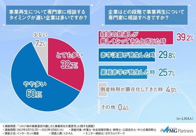 株式会社PMGパートナーズ(本社:東京都新宿区、代表取締役:佐藤 貢)は、弁護士・社会保険労務士・税理士・公認会計士・中小企業診断士を対象に、「コロナ禍の事業運営の厳しさと事業再生の重要性」に関する調査を実施しました。