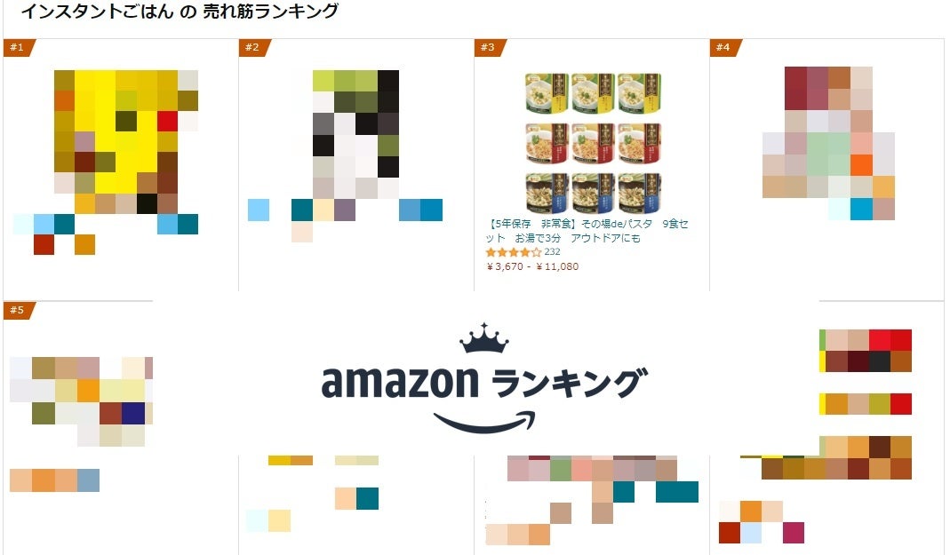 2022年3月25日、Amazon売れ筋ランキング(インスタントごはん部門)にて第3位を獲得しました。当部門は非常食だけでなくレトルトご飯やカップご飯など日常食も含まれる中、「その場deパスタ」はその上位10位以内の人気商品になっております。また3月4日時点で第8位、3月22日時点で第5位とランキング順位を着実に上げ、数ある非常食の中で、今注目を集めています。