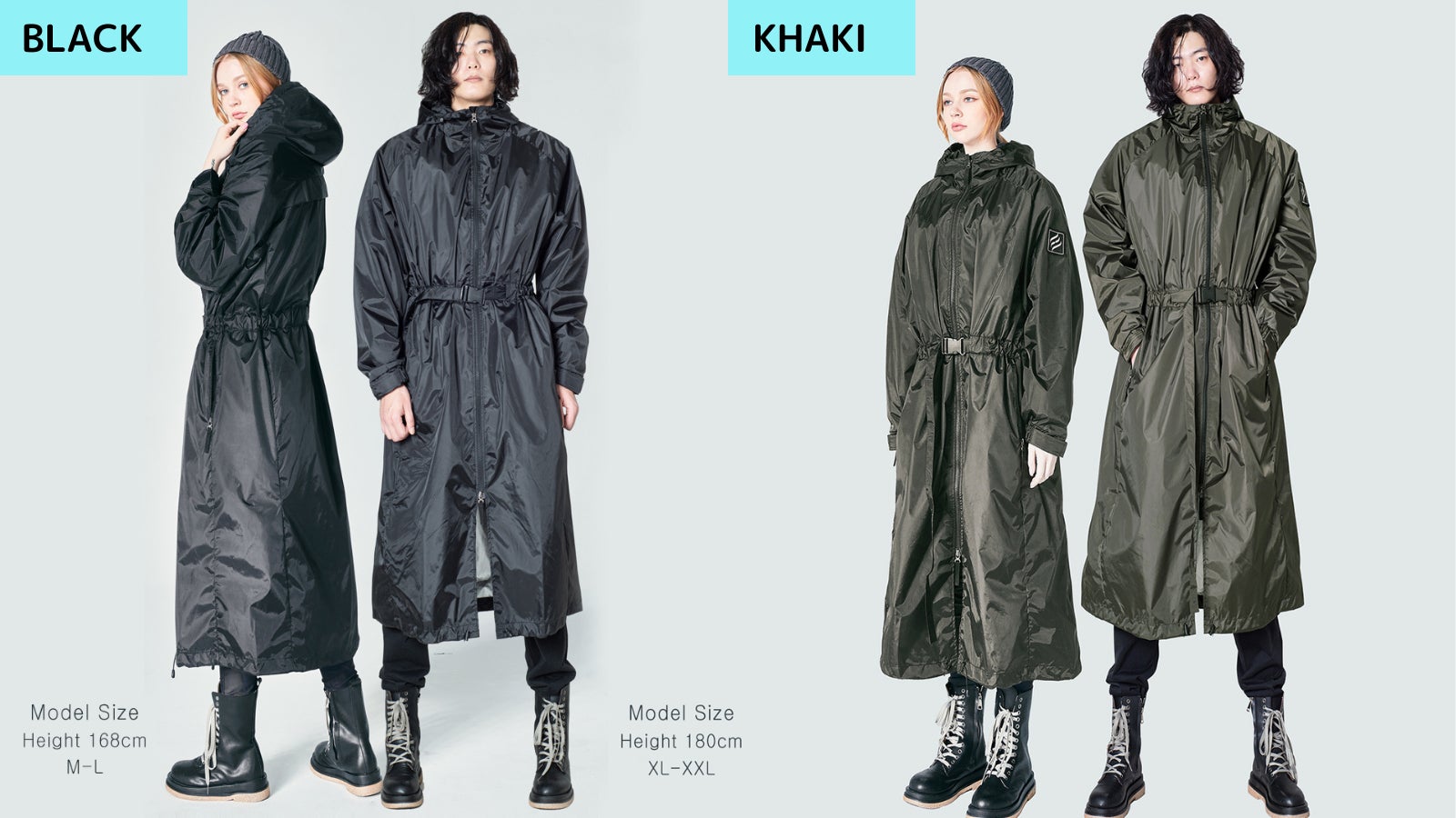 高い撥水効果がありますので、突然の雨にレインコートとしても着用可能!年齢を問わずご着用いただけるスタイリッシュな男女兼用デザインなので、ご家庭に1着、夫婦、カップルで共有するのもおすすめです。