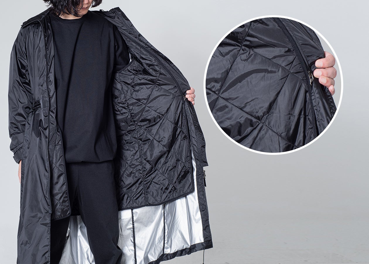 キルティングライナーは中綿にウェルロンというポリエステル繊維を特殊加工した合成保温材を使用し、冬の体温の蒸発を防ぎ真冬の寒さにも対応します。一般的なものよりも軽く、保温性も優れているので、取り外して別のアウターのインナーとして組み合わせも可能です。