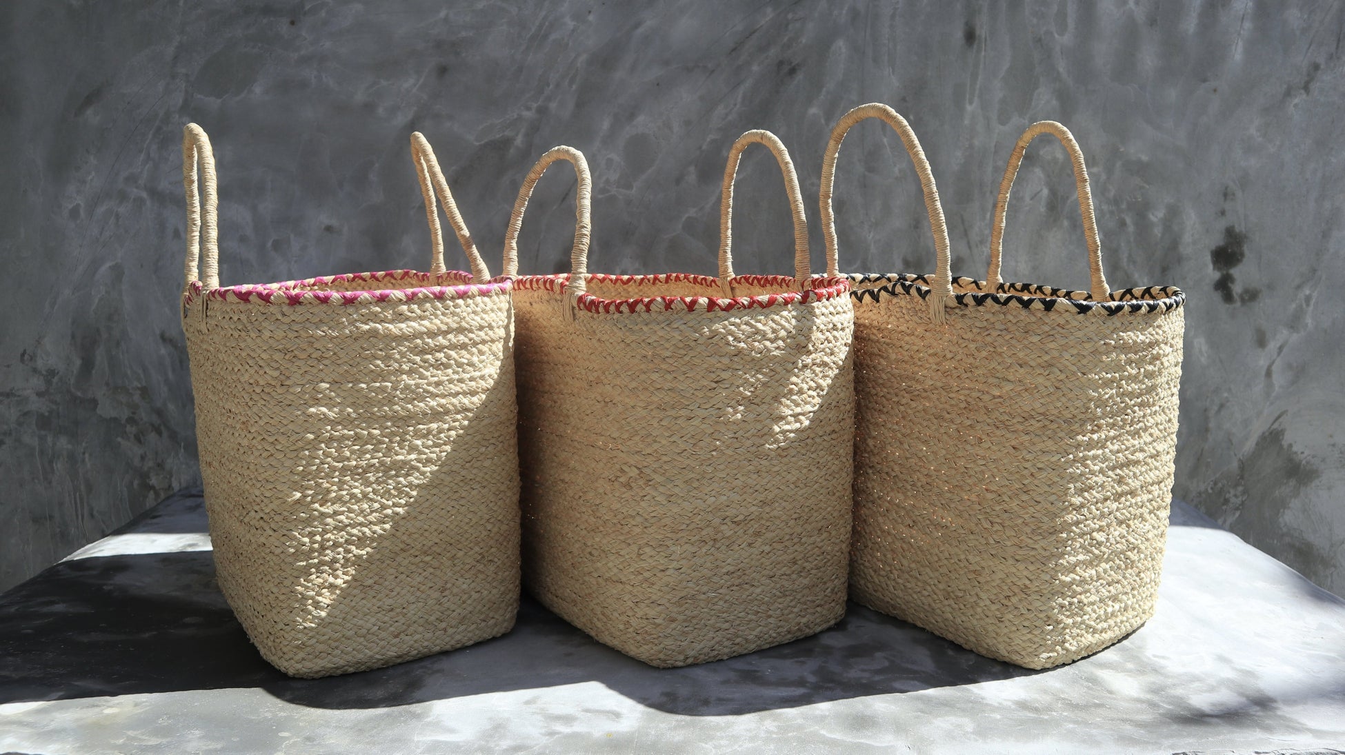 「AMPIANA」の商品は、豊かな自然に恵まれた島国マダガスカルの各地から集めた、ラフィアヤシをはじめとする植物から繊維を取り出し染色、ひとつひとつ手作業で編んで製作しています。形も色も込められた想いもそれぞれ異なるのが特徴です。