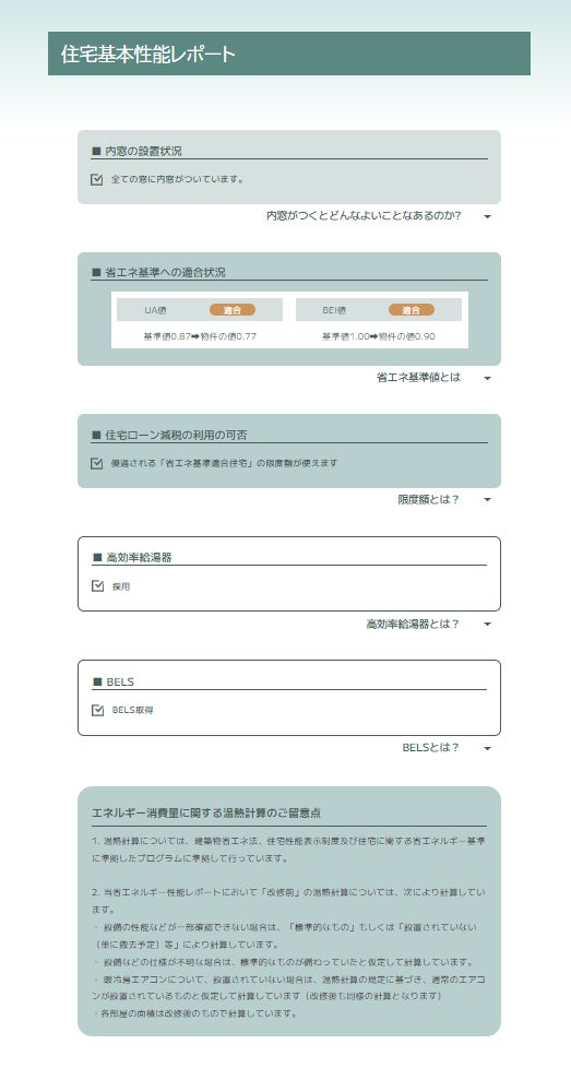 消費エネルギー性能の基準値BEI に適合する(BEI 1.00 以下)、または消費エネルギーを1割程度削減する(BEIを0.1削減)リノベーションに対象を広げ、「省エネルギー性能レポート」をご提供いたします。