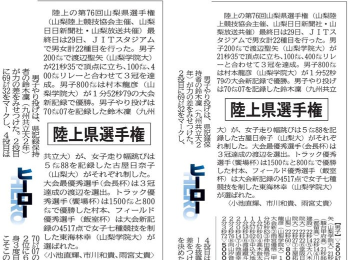山梨日日新聞は7月1日からスポーツ面の文字サイズを大きくし、より読みやすくします。併せてページの段数を15段組みから12段組みに変更し、1行を11字から13字にします。