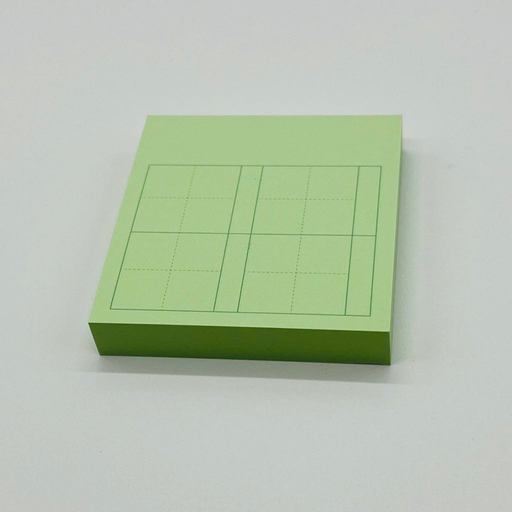 22mm角のマス目の他に読み仮名枠をそれぞれ4つずつ印刷しているフセン。第32回日本文具大賞を受賞。
