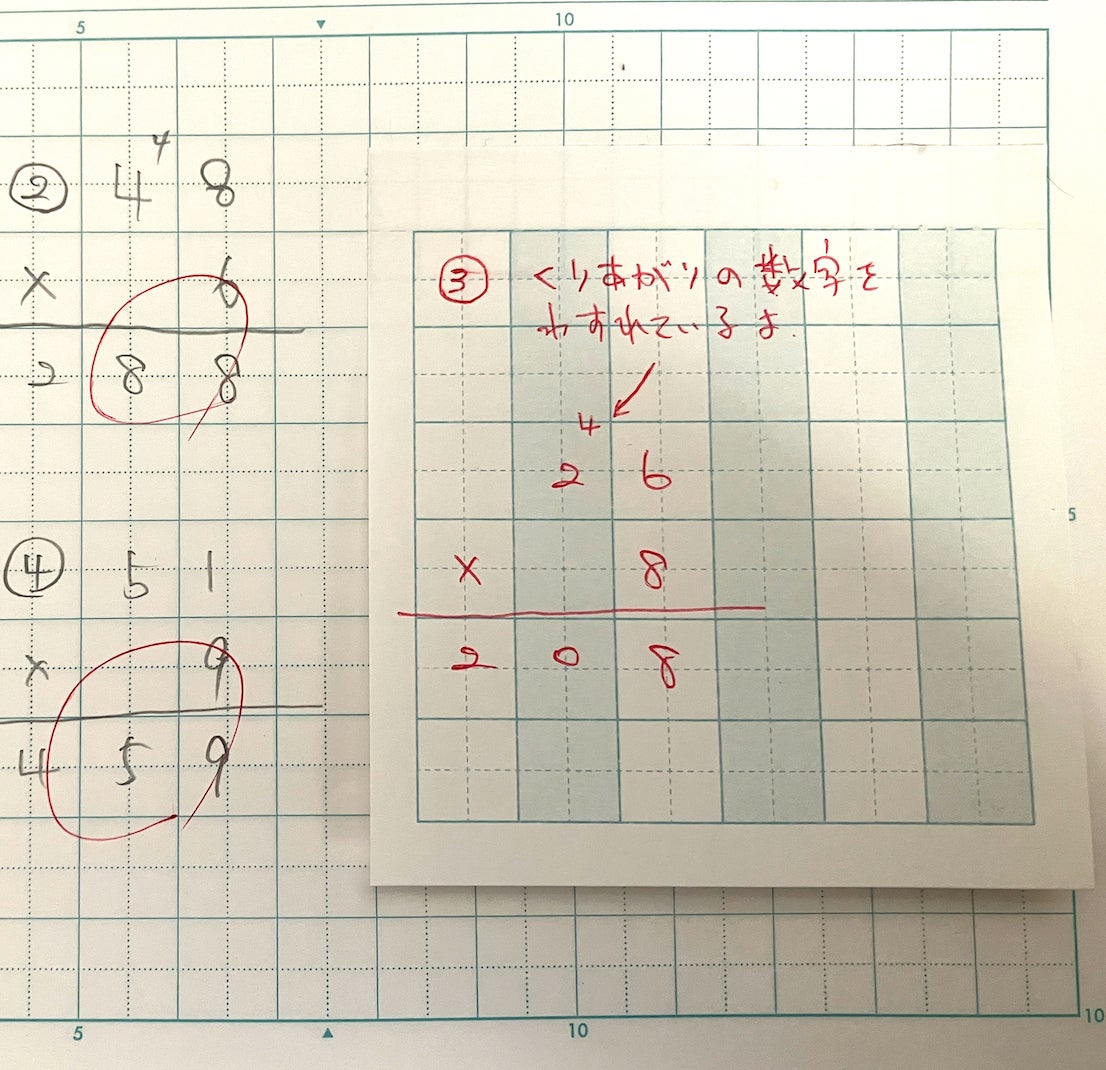 計算用のマス目が印刷されたフセン。筆算の位取りに有効なデザインを採用し、誰でも扱いやすい商品となっている。文房具屋さん大賞2024入賞。