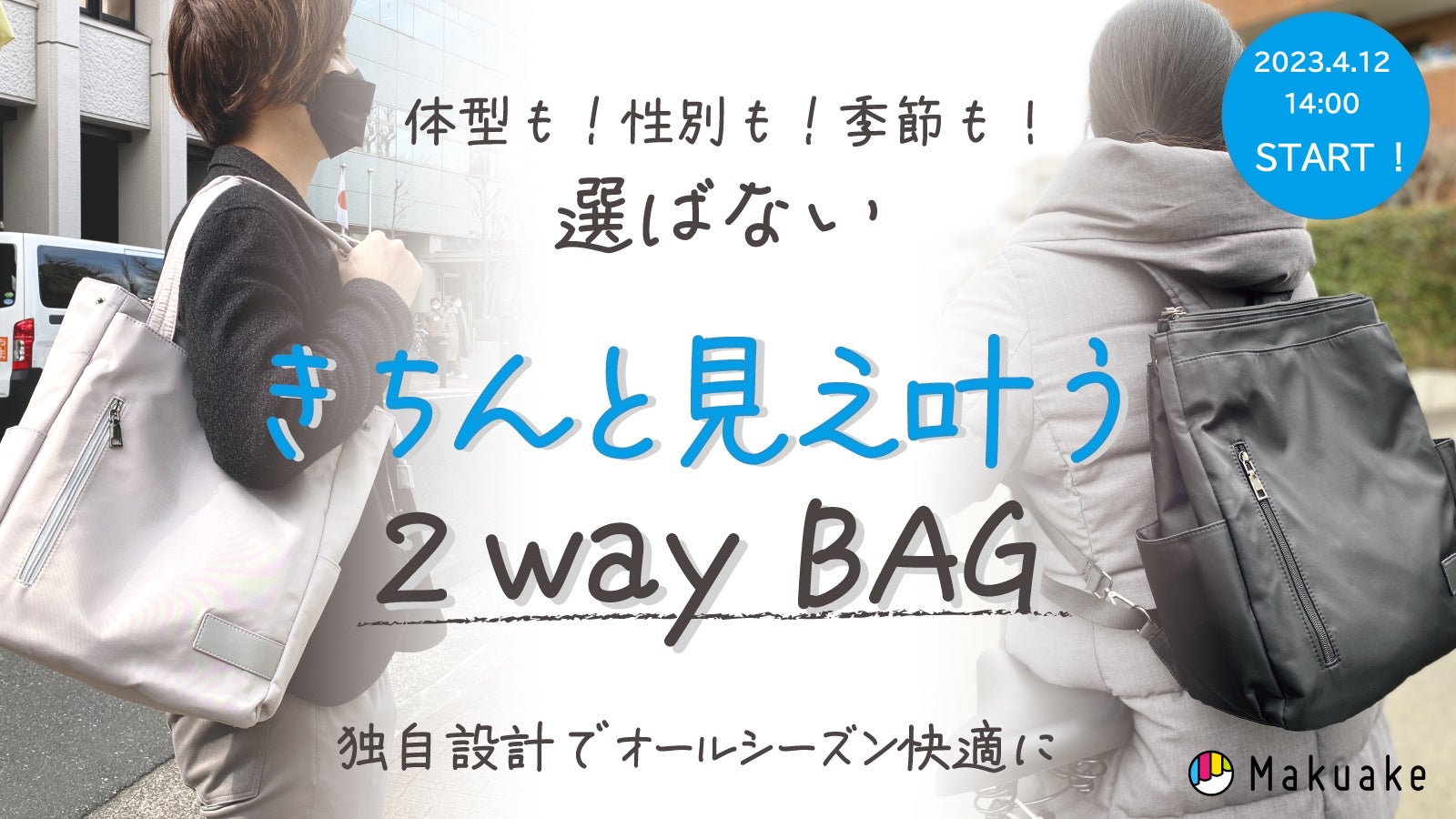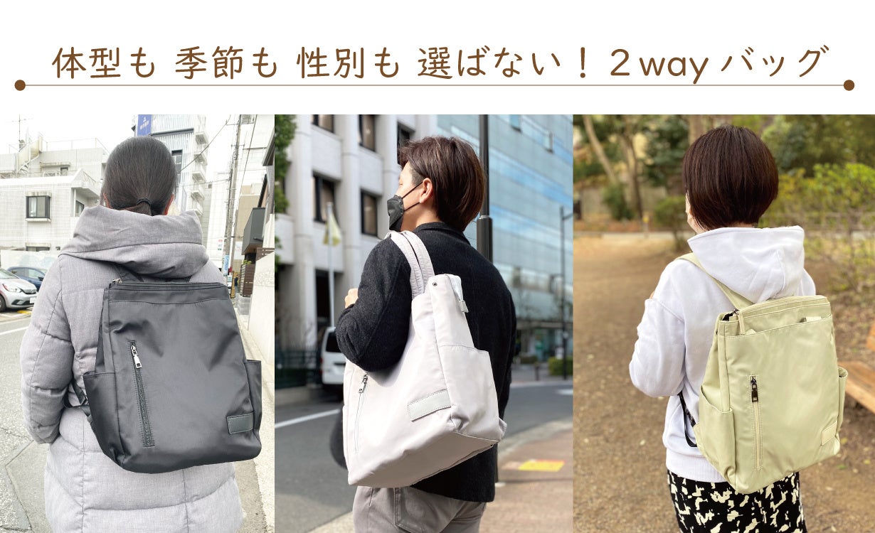 体型も性別も季節も選ばない!多様性時代の2wayバッグの第2弾をMakuakeで4月12日より先行販売開始