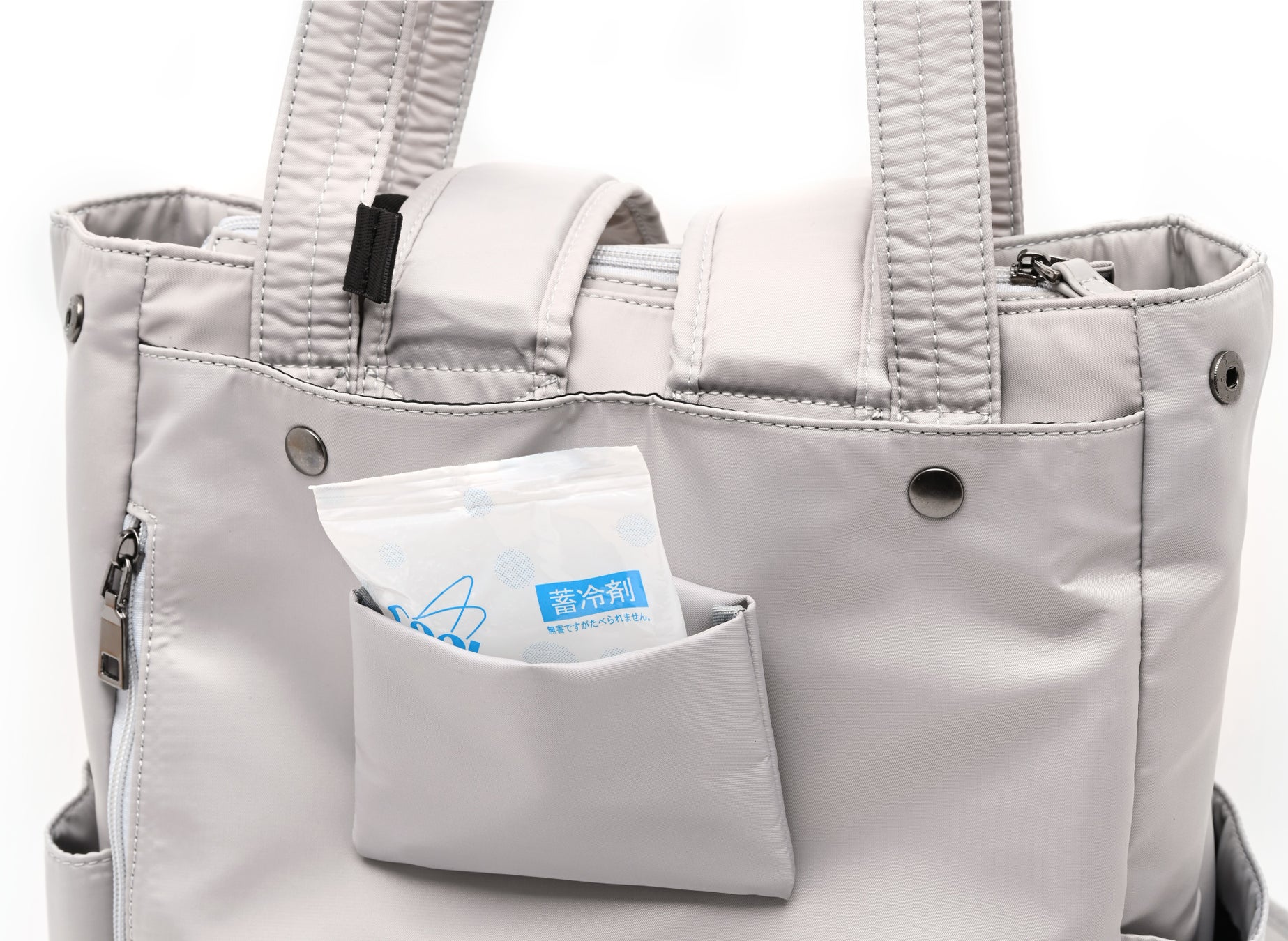 リュックで持った時には背中で温度調節を、トートで持った時には脇下で温度調節をしてくれます。