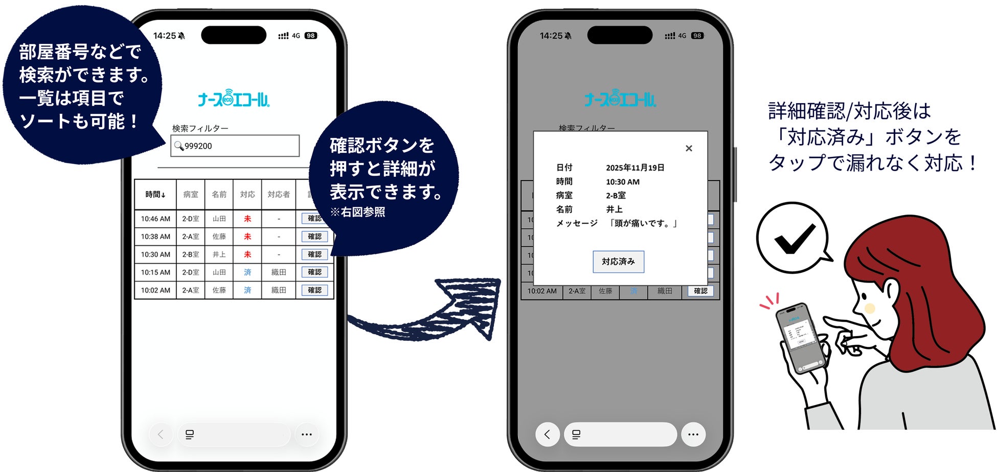 呼んだら必ず応えてくれる安心感が、入居者の満足度向上につながります。