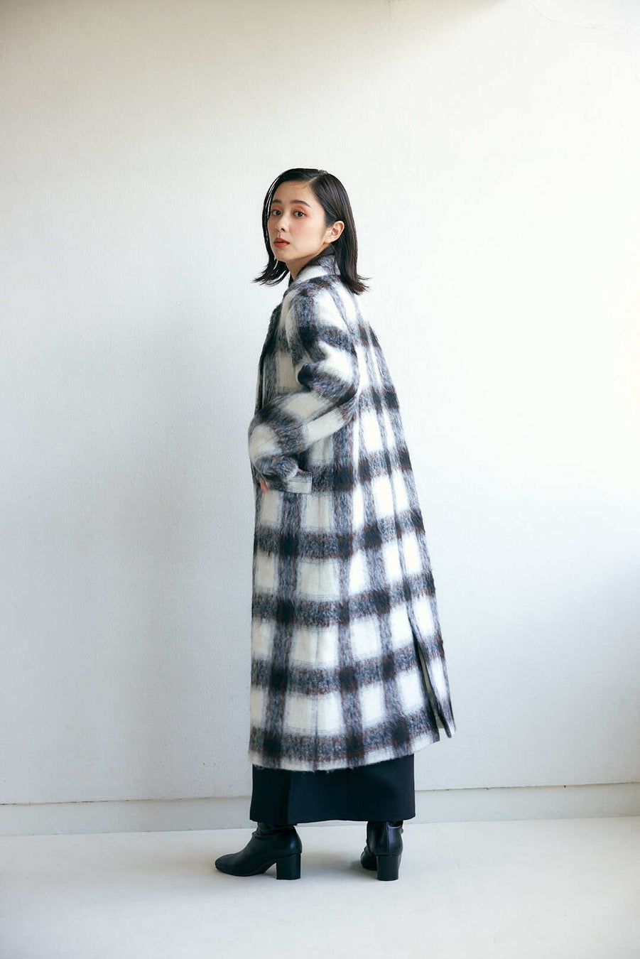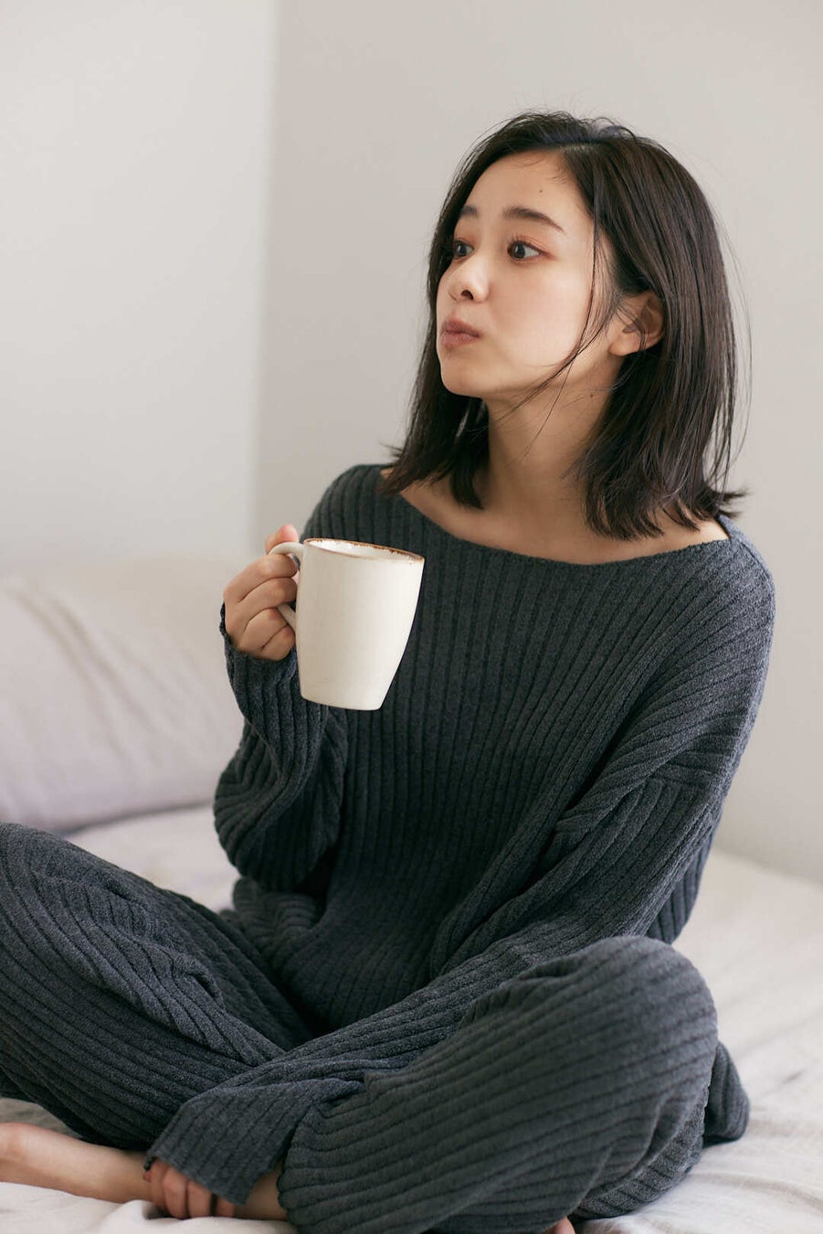 ①ボートネックニット&リブパンツ SS/S/M/L ¥14,850(税込) black / ivory / brown / charcoa
