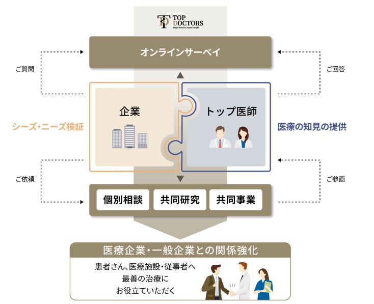 「TOP DOCTORS(トップドクターズ)」では、その関係性を活かし、医療の知見を産業界とつなげる取り組みを通じて、医療のみならず社会によりよい情報の発信と共有を行う事業を展開してまいります。