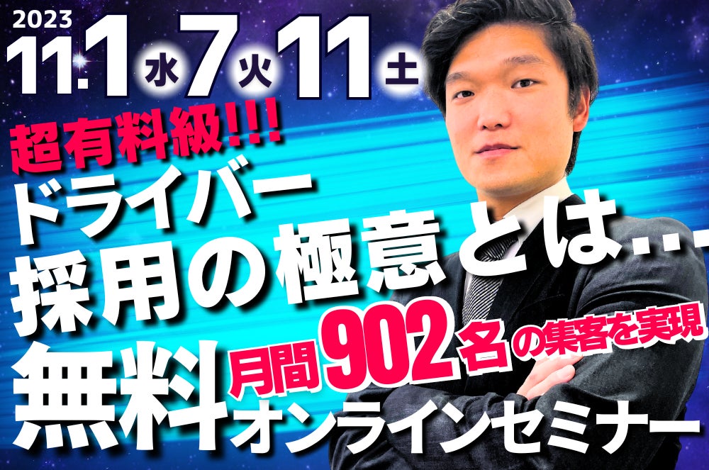 11月1日(水)軽貨物ドライバー採用特化型セミナー開催決定。2024年問題、インボイス制度、働き方を改善してもまだまだ足りないドライバー職。軽貨物市場の成長を見据えてドライバー確保を狙う事業者募集!!
