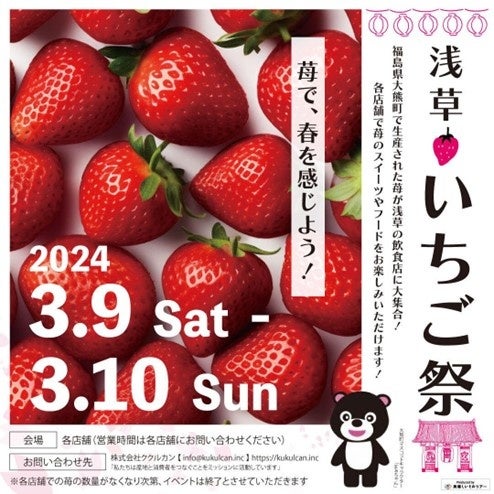農作物調達AIプラットフォームおよび飲食店事業者向けツールを開発する株式会社Kukulcan(本社:東京都中央区、代表取締役:ホン リナ)は、東京都台東区浅草地域にて2024年3月9日、10日に「浅草いちご祭」開催しました。