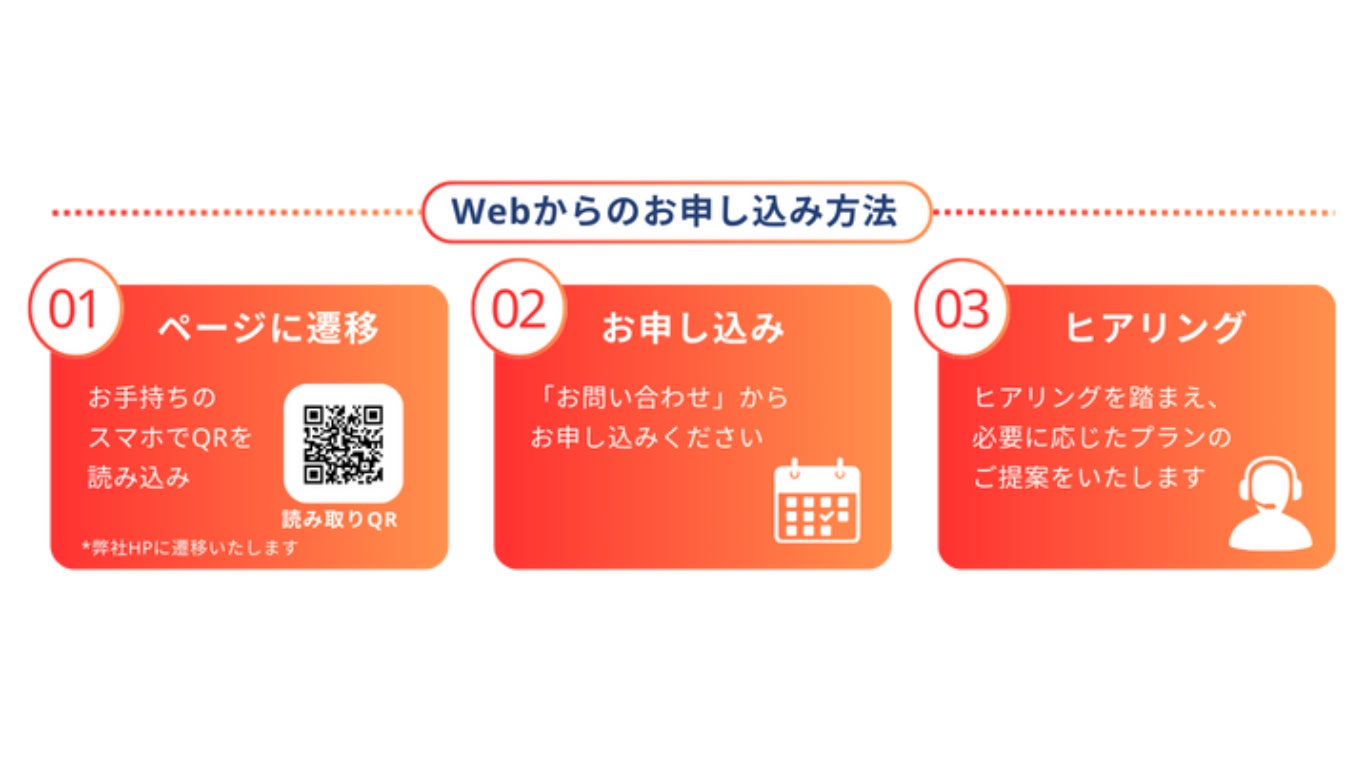 ご利用を希望の方は、当社ウェブサイトのお問い合わせよりお申し込みください。担当者からのヒアリングを経て、サービス利用開始のご案内をいたします。