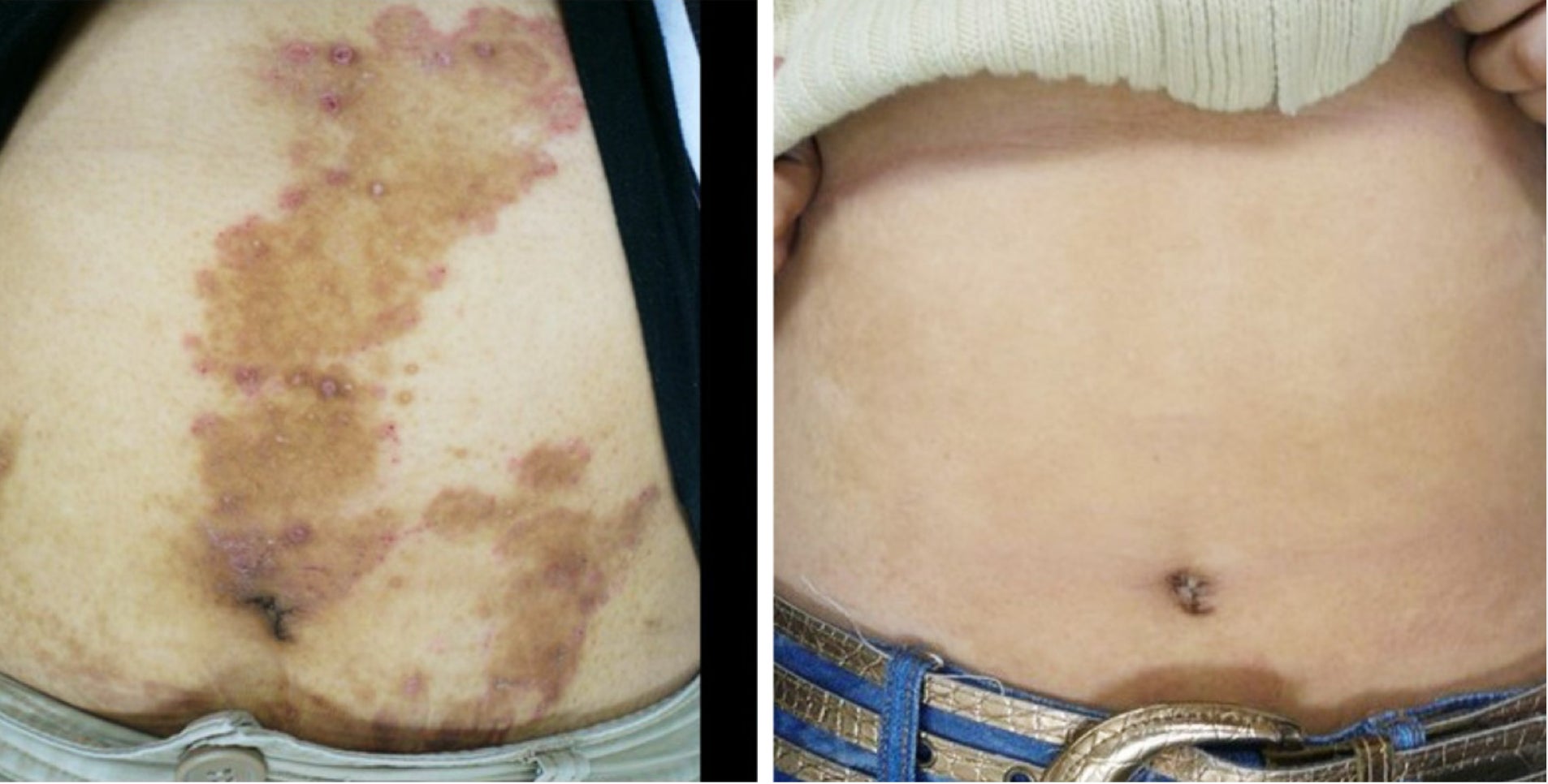 腹部のアトピー性皮膚炎に対して塗り薬と内服治療を受けていましたが、あまり改善が見られませんでした。原因は口呼吸でした。口呼吸への指導を行なった結果、3ヶ月でこのように綺麗な肌になりました。