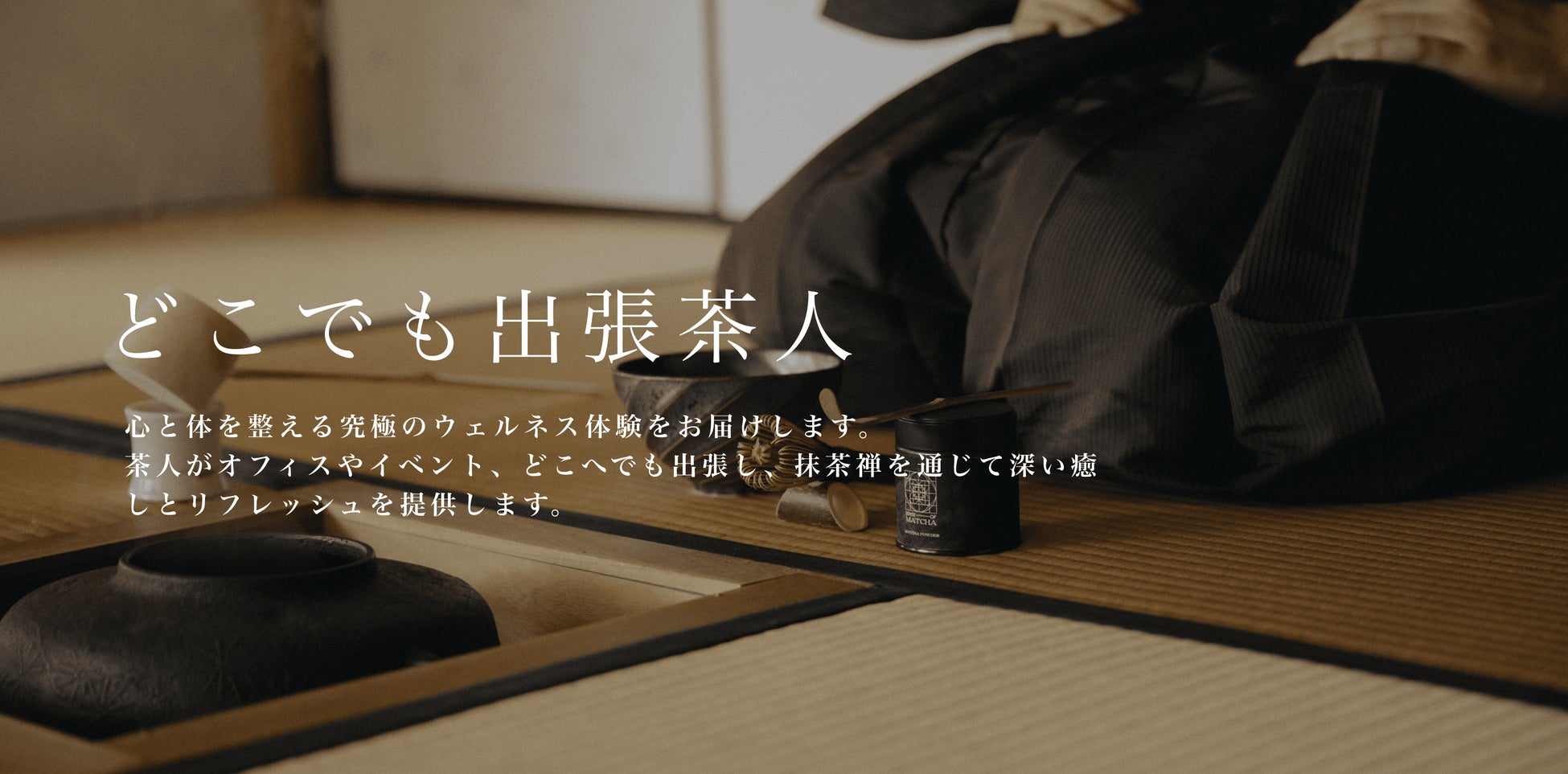 心と体を整える究極のウェルネス体験をお届け。茶人がオフィスやイベント、どこへでも出張し、抹茶禅を通じて深い癒しとリフレッシュを提供します。