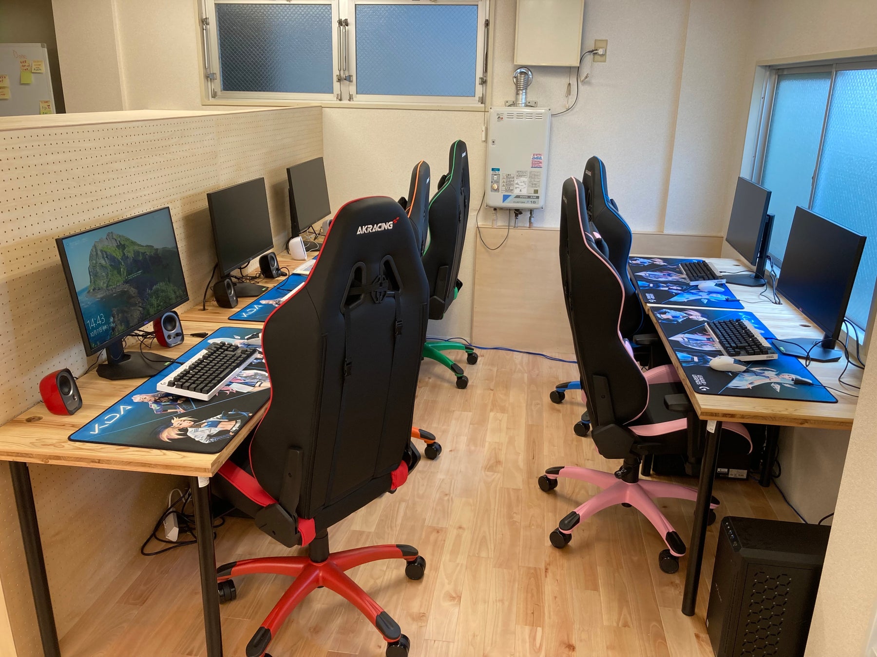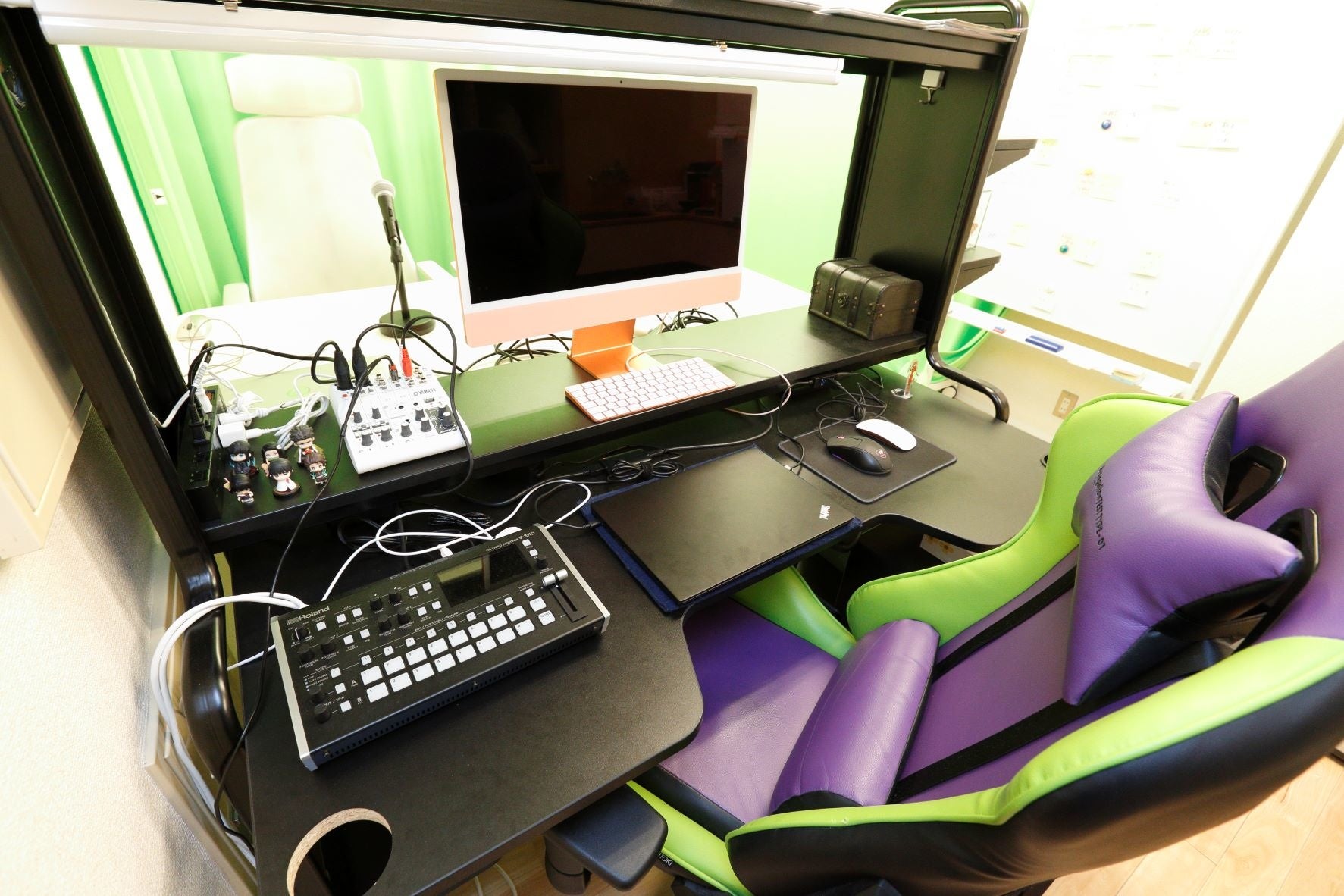 ・配信スタジオ完備!ゲーム配信、動画作成に必要なハイスペックPCや配信機器、グリーンバックもあり本格的です。