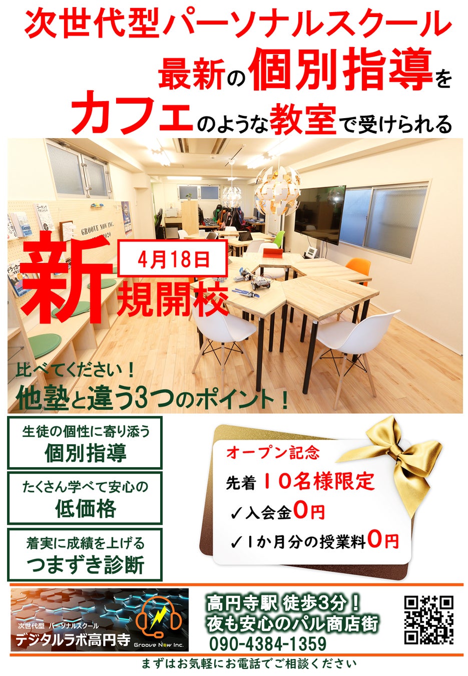 「デジタルラボ高円寺」に次世代型パーソナルスクール(個別指導塾)コースを開校し2020年04月18日より