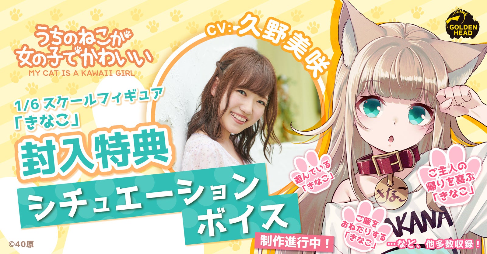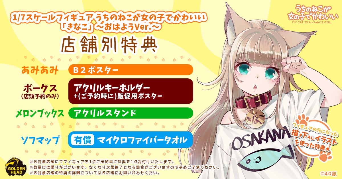 高品質フィギュアブランドのゴールデンヘッド は、人気イラストレーター "40原(しまはら)"先生が描く『うちのねこが女の子でかわいい』より、「きなこ」を1/6スケールフィギュア化し、2022年6月27日(月)より予約受付を開始いたしました。
