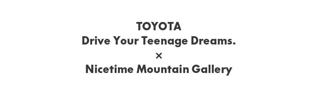 ナイスタイム マウンテン ギャラリーでは、株式会社STARBASEとトヨタ自動車株式会社が立ち上げたプロジェクト、「Drive Your Teenage Dreams. (以下DYTD)」とコラボレーションした限定商品をリリース。