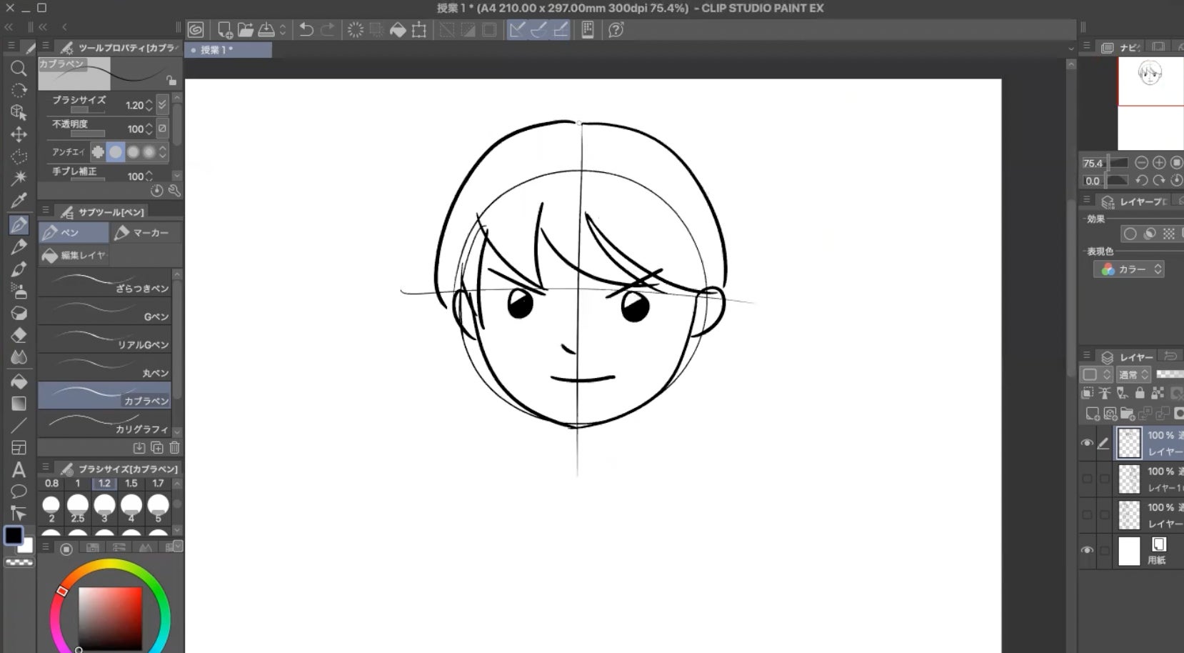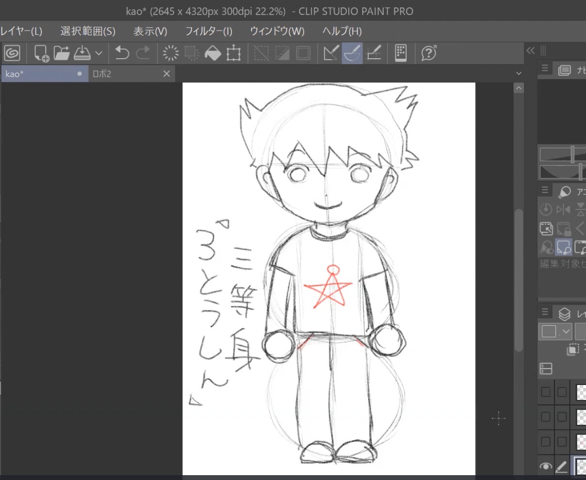 普段から全身の女の子など描き慣れている中学生は5等身、小学校低学年の子には2等身や3等身などレベルに合わせて体のバランスを学びました。