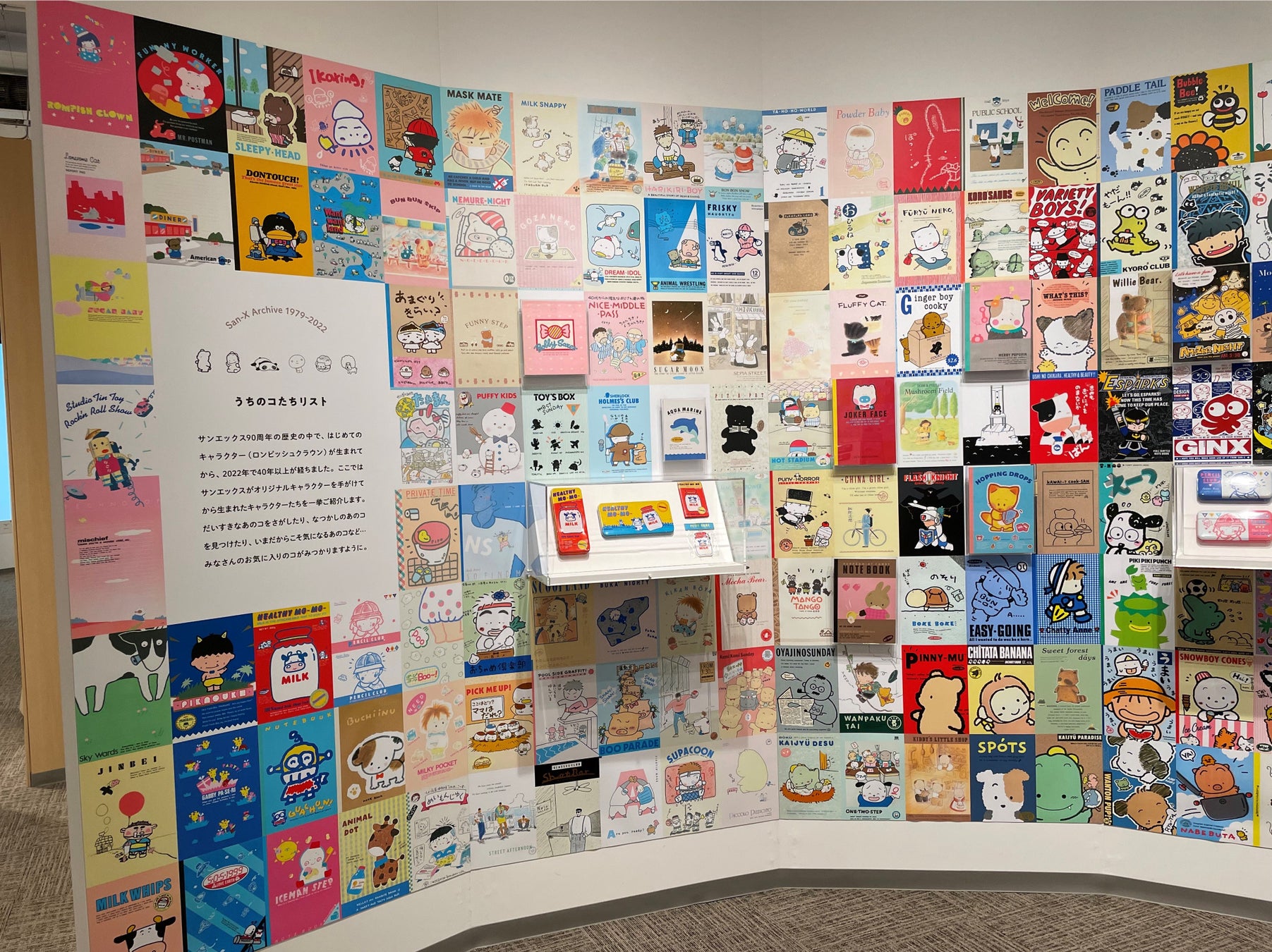 サンエックスが初めて手がけたキャラクターから「こげぱん」「アフロ犬」、現在人気の「チキップダンサーズ」まで、いま改めて会いたいキャラクターにも出会える空間です。