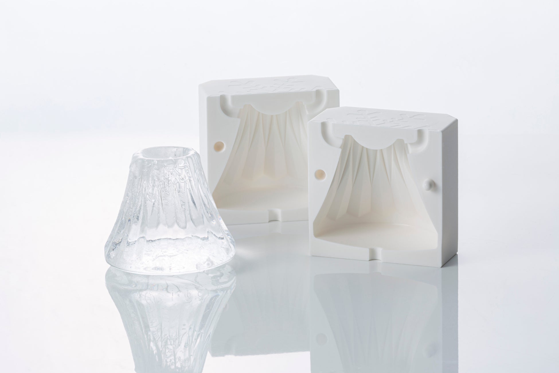 『ice drops 交換用モールドFuji』にて作ることが出来る美しいクリスタルカットの富士山氷は、