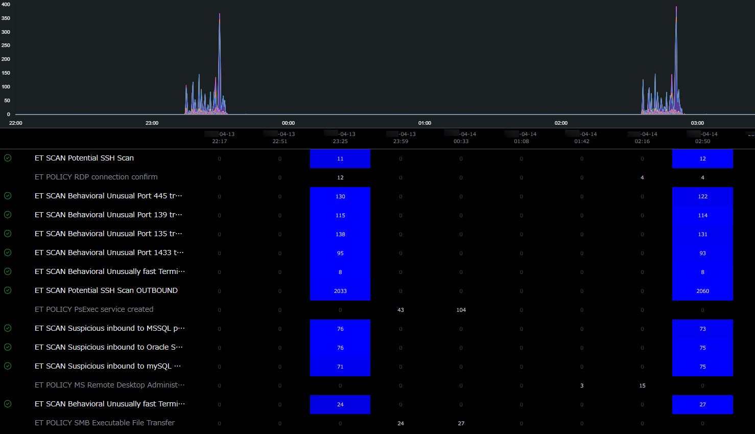 1.外部のIPアドレスから内部ネットワークへの大量のスキャンを検知