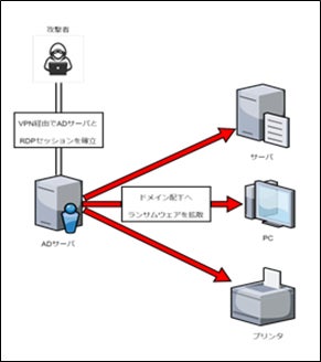 →リモートで内部のIPアドレスに対してランサムウェアを拡散していることが判明。