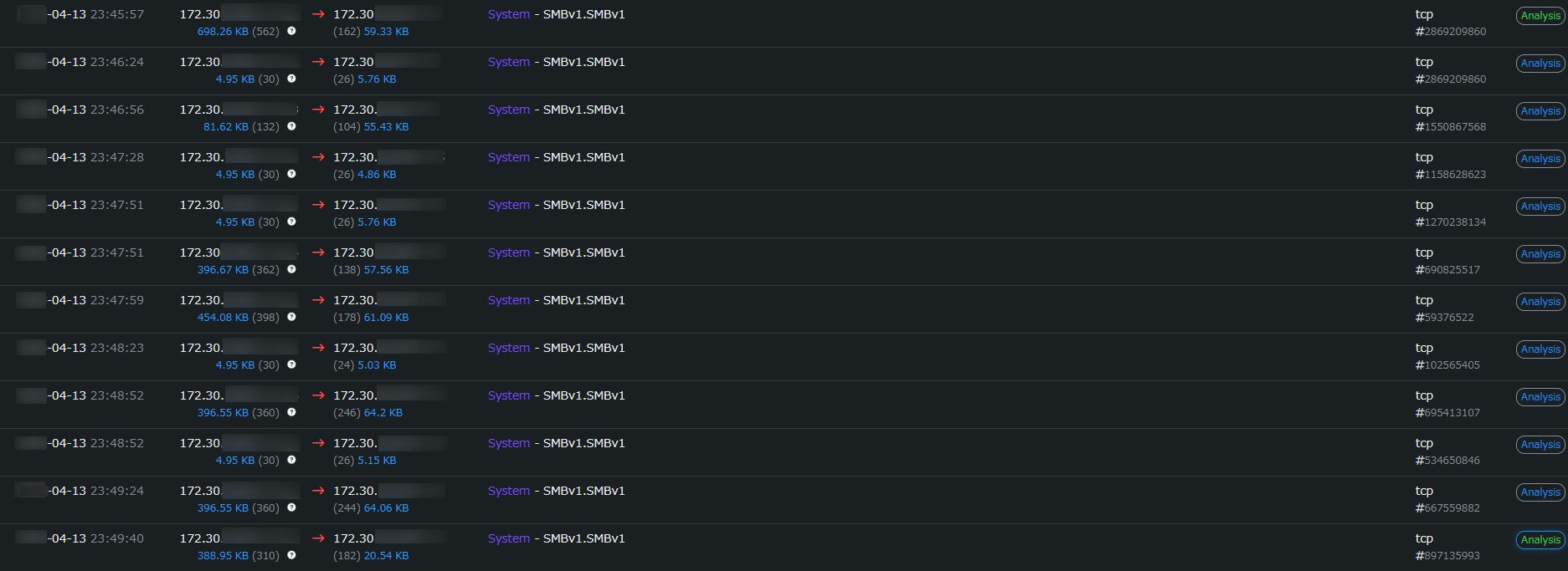 ↑疑わしいIPアドレスからランサムウェアを拡散している様子