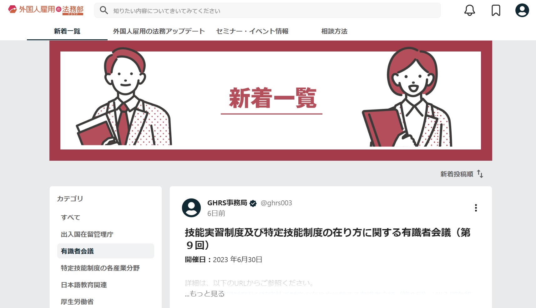 当サービスでは、セミナーやイベントで使用された資料や実務上の参考資料を後日オンライン上に掲載しています。セミナーやイベントへの参加が難しかった場合や後日情報の復習を希望する場合は、該当ページより資料を閲覧・ダウンロードすることができます。特に、外国人雇用に携わる企業や人事担当者にとっては業務に役立つ参考情報源の一つとなるでしょう。