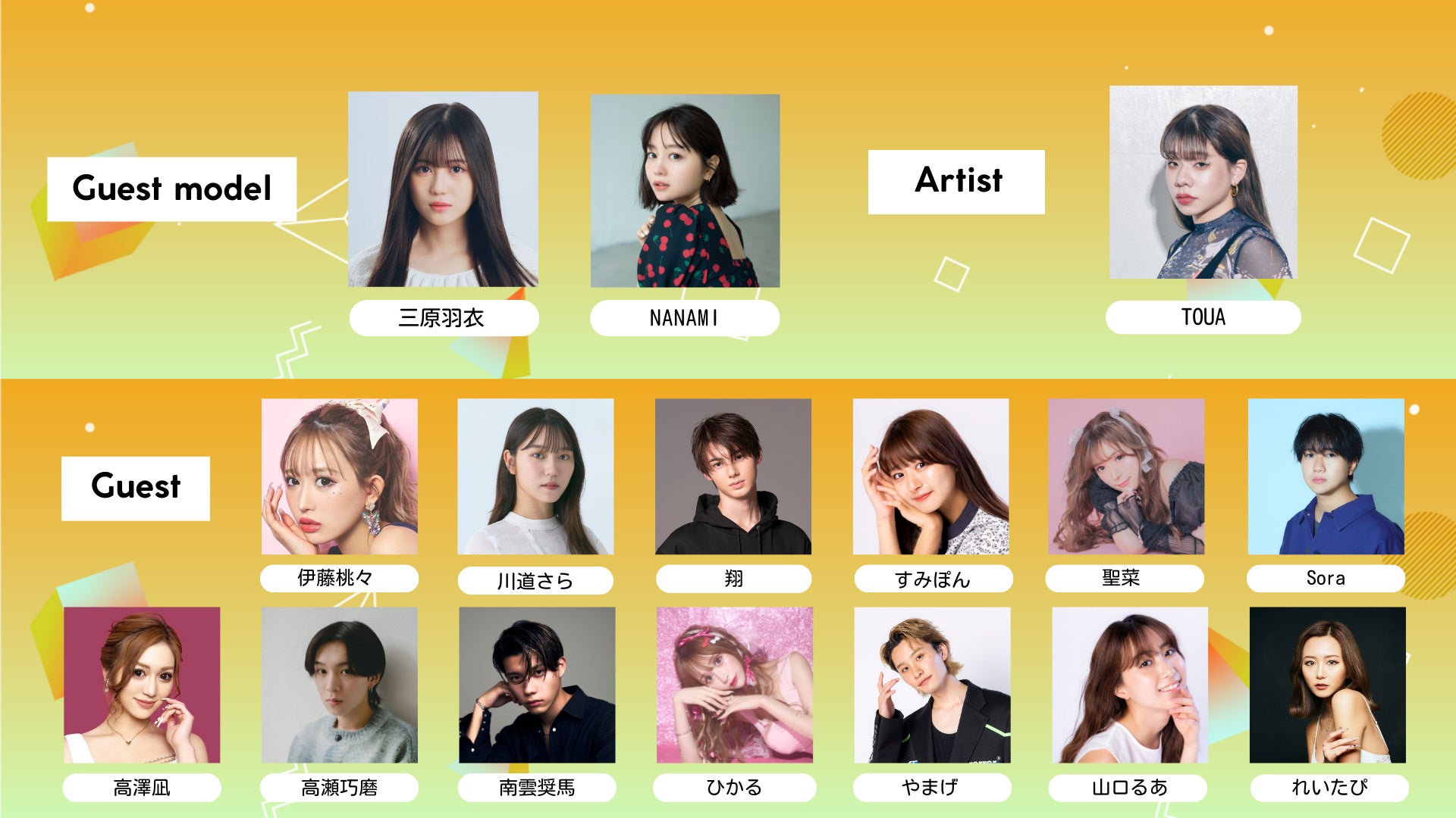 さらにゲストとして、同世代から絶大な人気を誇る現役女子高生YouTuberのMINAMI、ABEMAの青春恋愛リアリティーショー「今日、好きになりました。」に出演し話題を集めた川道さら、雑誌「小悪魔ageha」専属モデルの伊藤桃々、ひかる、聖菜、高澤凪、「nuts」専属モデルのれいたぴ、日本テレビ「超無敵クラス」に出演中の翔、人気TikTokクリエイターの南雲奨馬、YouTubeの枠を超えて俳優やアーティストとしても活躍するSora、Z世代に支持されCMなどでも活躍する高瀬巧磨などの出演が決定しました。