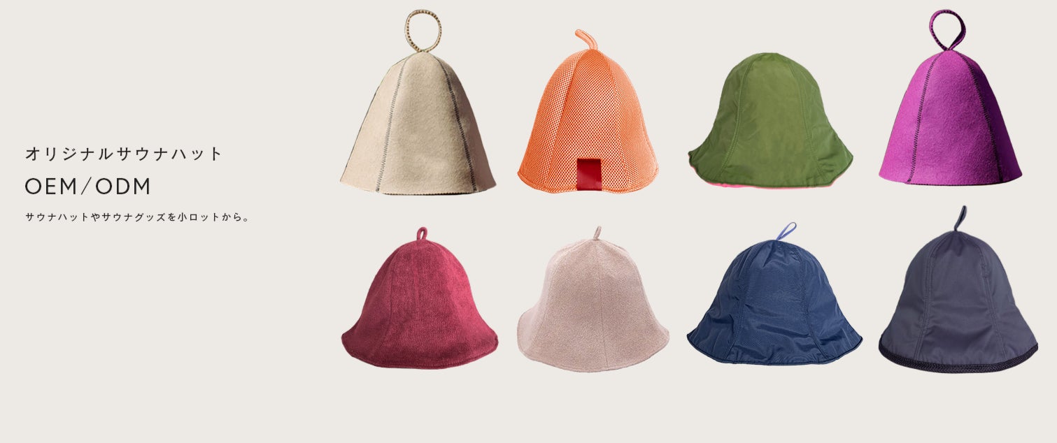 サウナハットの全5種類×20カラー=約100商品のOEMが可能に!