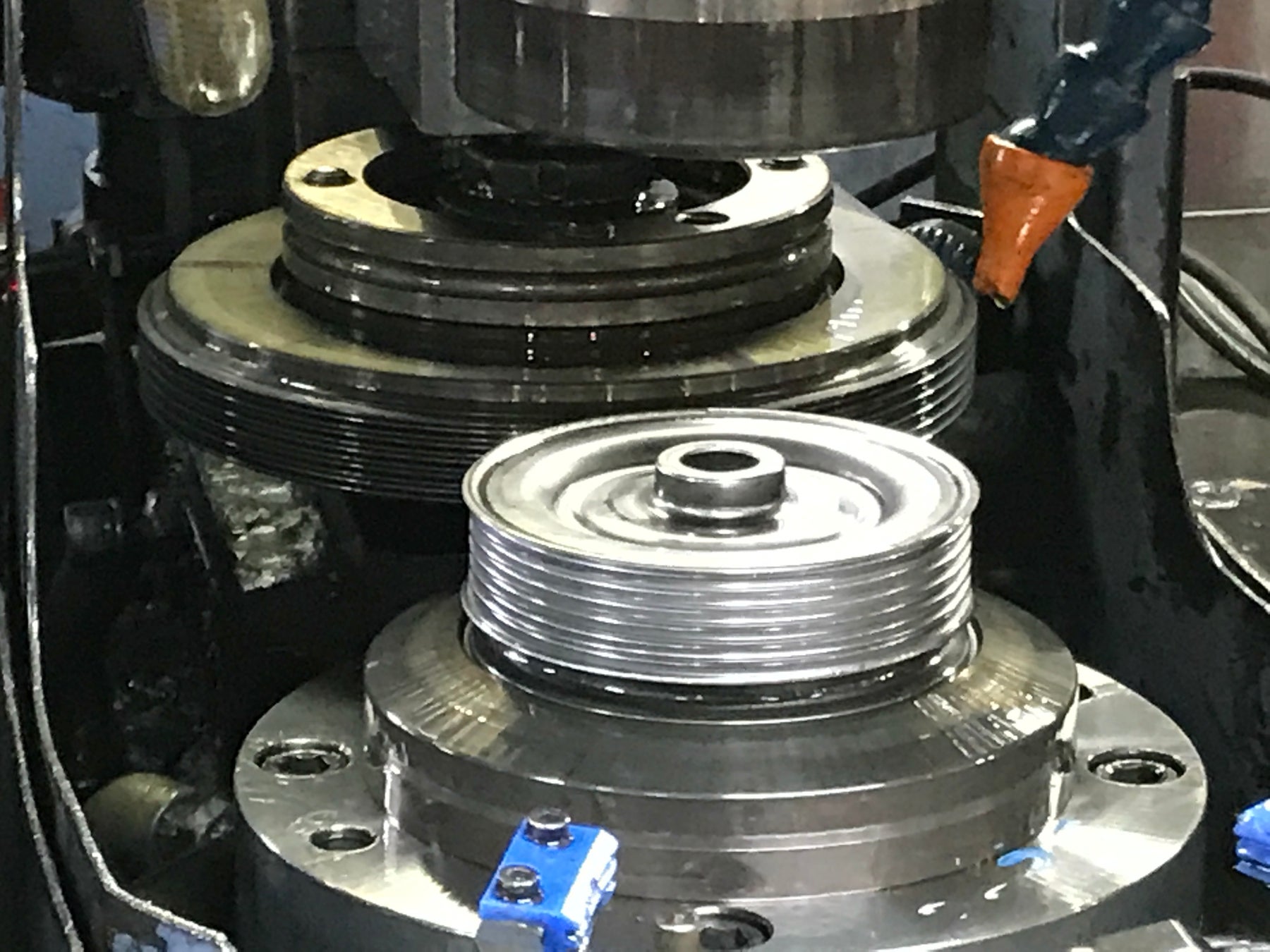 自動車部品の製造において、「回転する製品は回転させてつくる方が良い」というシンプルな発想から生まれた工法。まずは板をカップ状にし、回転させながら転造ローラーを当てることで、自由度の高い形状に成形可能なカネミツ独自の技術で、素材板厚の1/4まで減肉が可能。