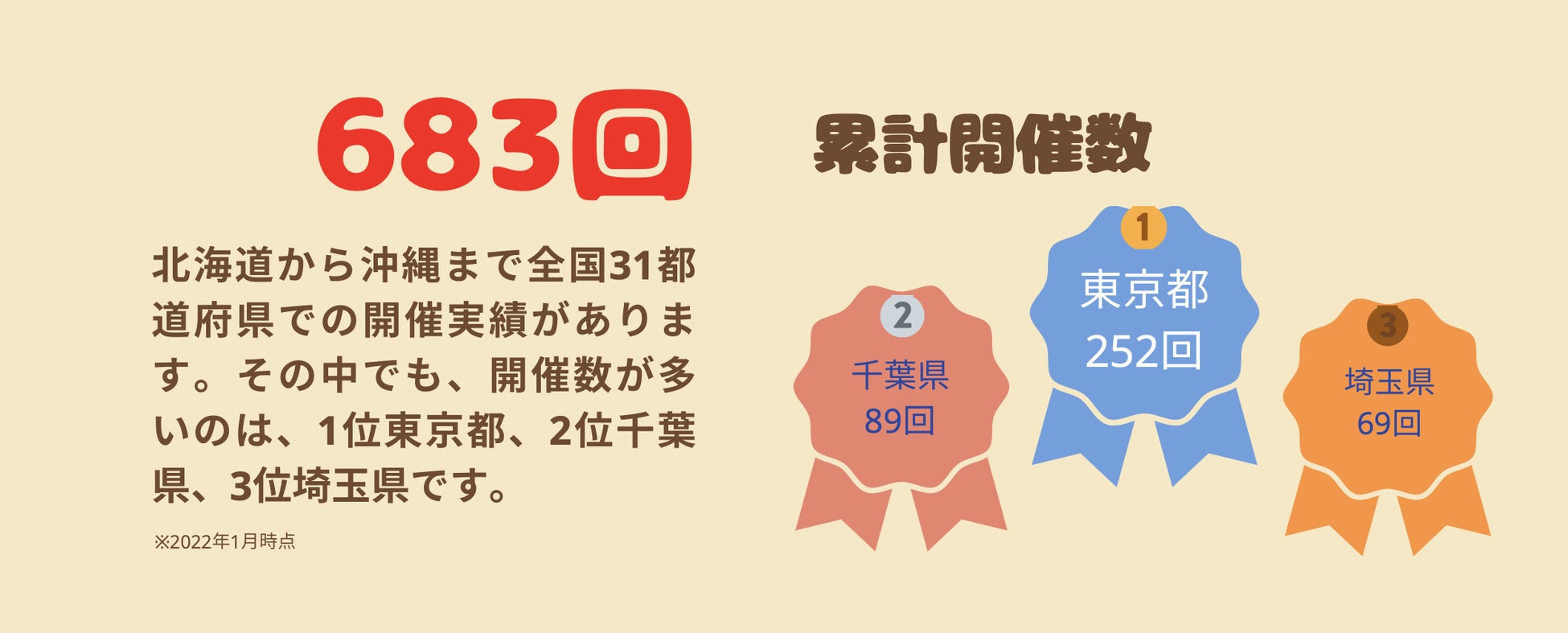 ■開催回数は683回、開催都道府県の最多は東京、次いで千葉、埼玉。