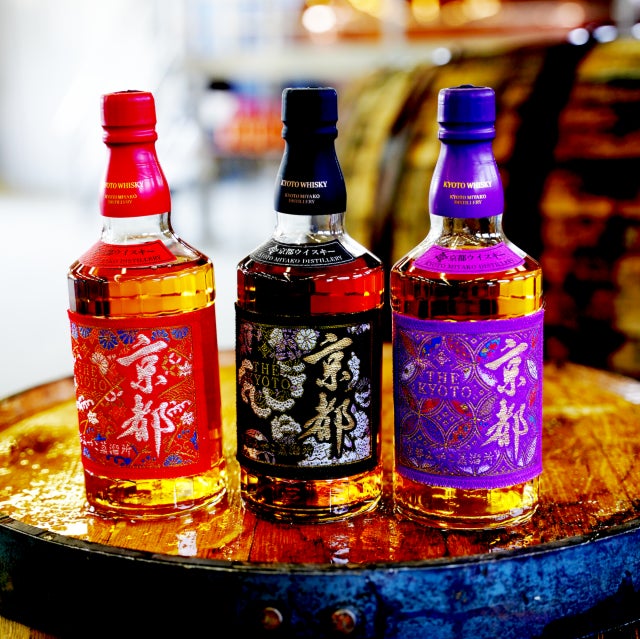 京都ウイスキーは表ラベルに西陣織を贅沢に使用して、独自の技法により、ボトルへの表現を可能にしました。1枚、1枚、手作業で職人が作成したこのラベルは存在感抜群で、多くのお客様にウイスキーと京都伝統工芸のコラボレーションを楽しんで頂いております。京都ウイスキー西陣織ラベルシリーズは、ピュアモルト紫帯とブレンデッド赤帯、黒帯の2タイプ、3種のラインナップとなっております。