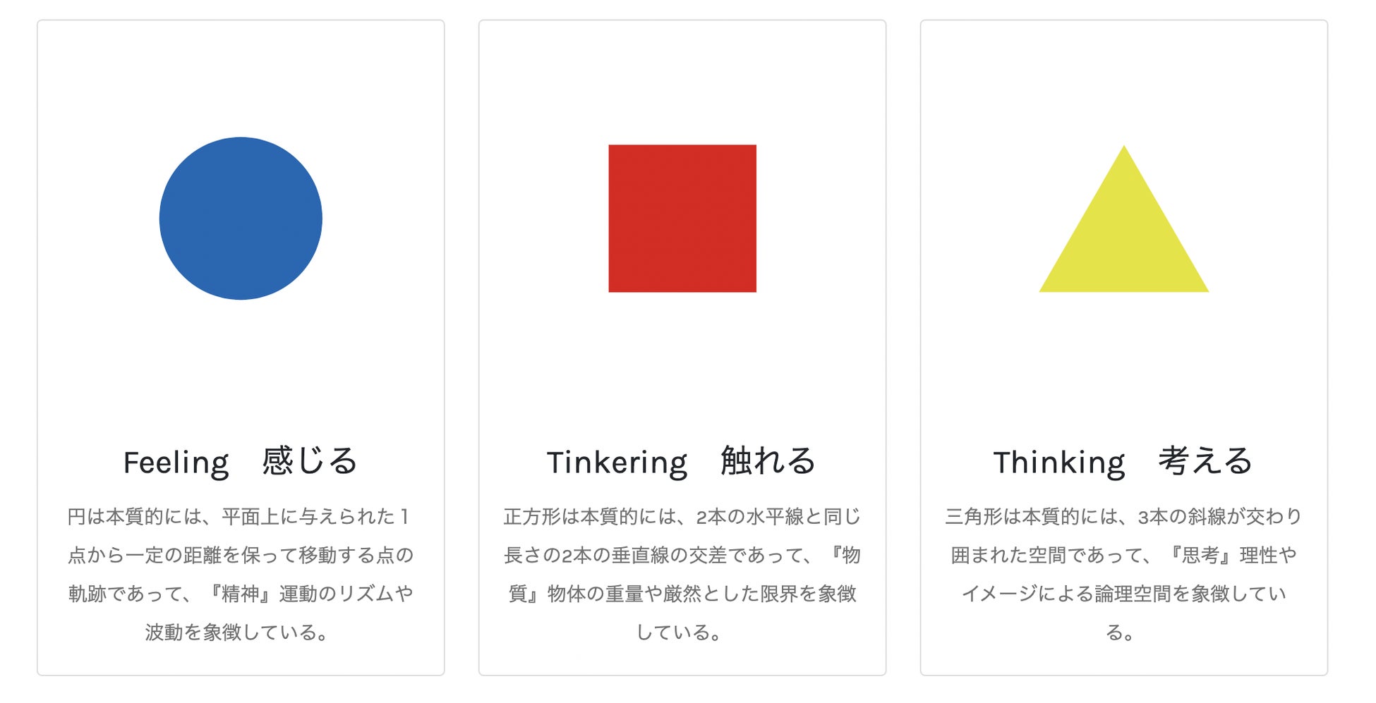 主に小学校で学ぶScratch(スクラッチ)というプログラム言語は、MIT(マサチューセッツ工科大学)のメディアラボという研究所で開発されたものです。ブロック遊びのような感覚でプログラミングができるScratchは子供たちにとても親しみやすく、世界中で使われています。メディアラボの前身である高等視聴覚研究所(CAVS)は、バウハウスというドイツのデザイン学校で教えていた人たちによって設立されました。彼らはナチスから逃れるため、ドイツからアメリカに亡命してきたのです。20世紀の初めに設立されたバウハウスは、丸、三角、四角の基本図形を重視した教育で知られ、機能的でシンプルさが特徴な現代のアートやデザイン、建築に多大な影響を与えました。