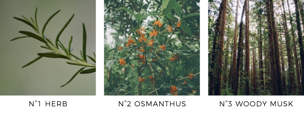 ハーブ、オスマンサス、ウッディムスク3種の香り
