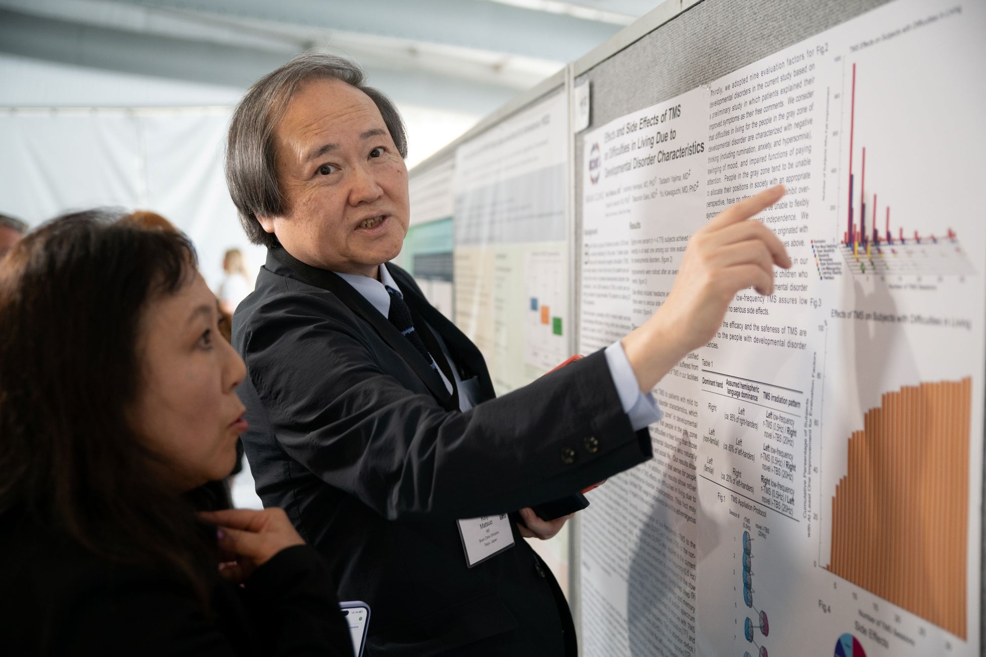 世界中から多くの医療従事者や研究者、TMSプロバイダーが一堂に会するCTMSS(臨床TMS学会)年次総会。そのポスターセッションにおいてブレインクリニックの松尾医師は、優位半球DLPFC(背外側前頭前野)への低頻度刺激と、非優位半球DLPFCへの高頻度刺激を適切に組み合わせることで、発達障害特性による生きづらさが改善されることを明らかにする研究成果を発表しました。会場では、たくさんの精神医学や児童精神医学に関わる医療従事者や研究者、TMSプロバイダーの興味や関心を集めました。