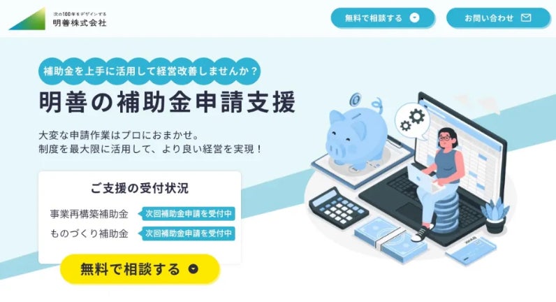 明善株式会社では経営支援および承継・承継支援の他に、補助金の申請支援や会計のバックオフィス業務を自動・効率化させるサービス「マネコン」の提供などを行っています。
