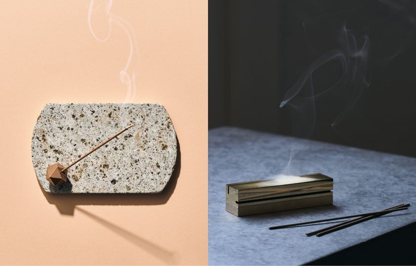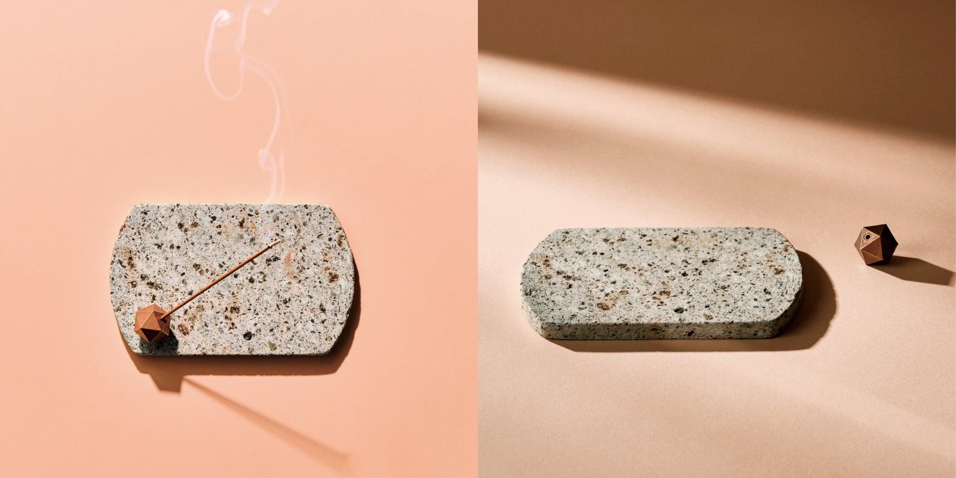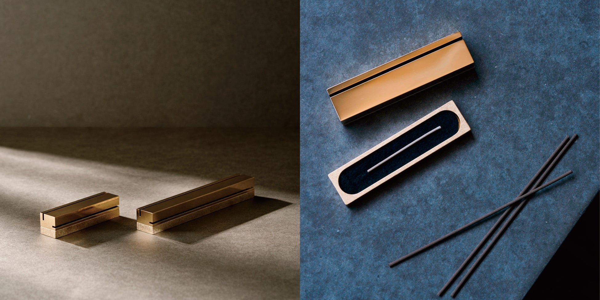 ウェルネス&マインドフルネスな暮らしに。インテリアにもなるお香のアイテム2種他をリリース。【 真鍮製の横置き香炉と、大谷石とブロンズ製香立てのセット 】等
