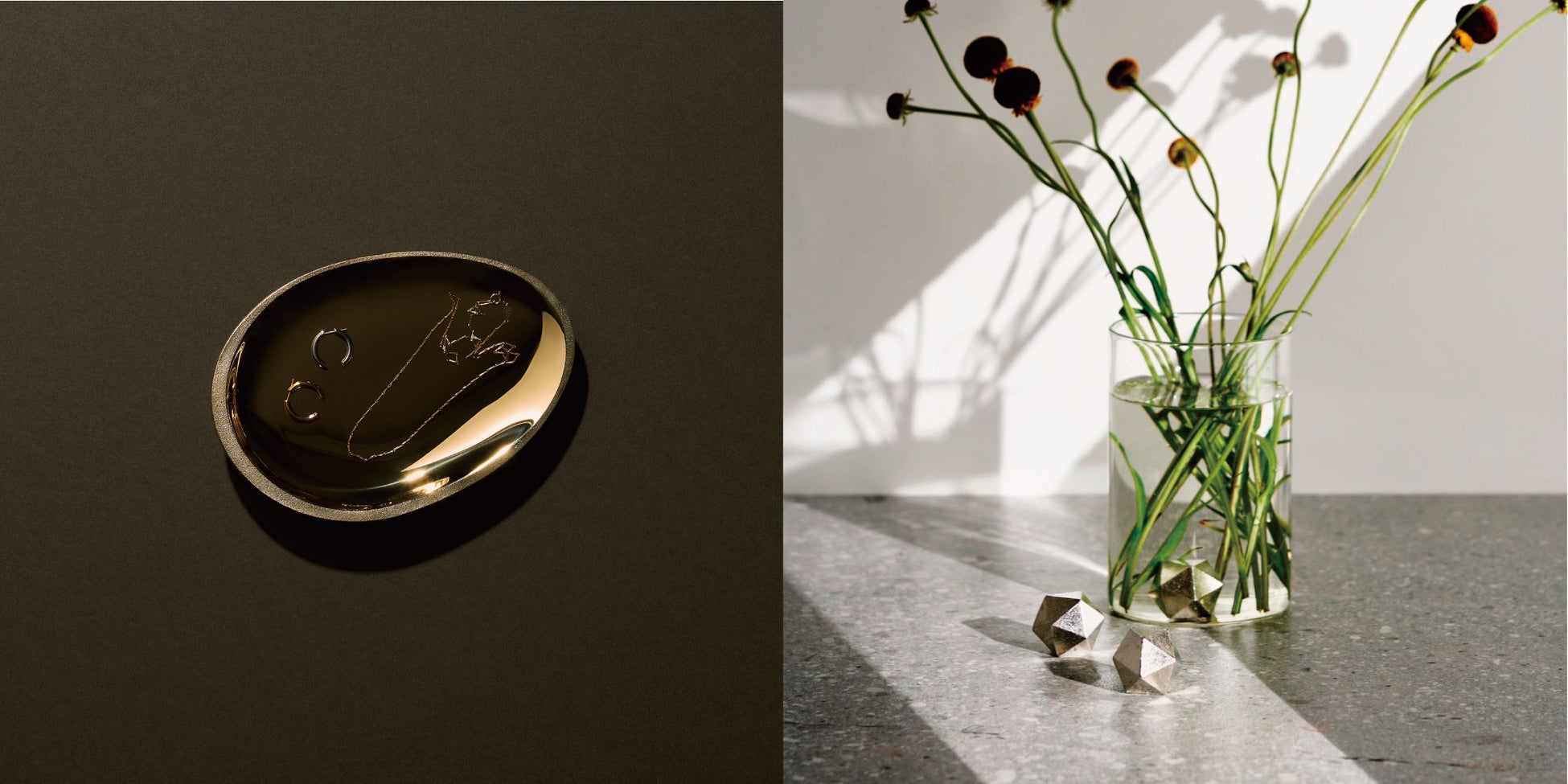 また、アバロンシェルをモチーフにした真鍮製のマルチトレイ「Abalone shell (アバロンシェル)」、花瓶に入れて使う正二十面体のリサイクル錫鋳物「poly aqua (ポリアクア)」も10月1日より販売いたします。