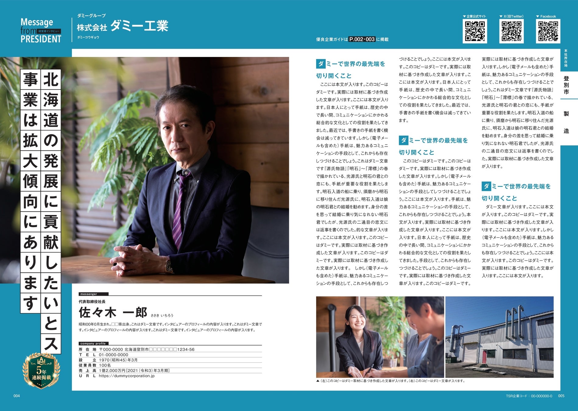地元北海道に貢献したい、就職したい、投資のため優良企業を探したいという方すべてにお届けする、優良企業のみ掲載された企業ガイドブックです