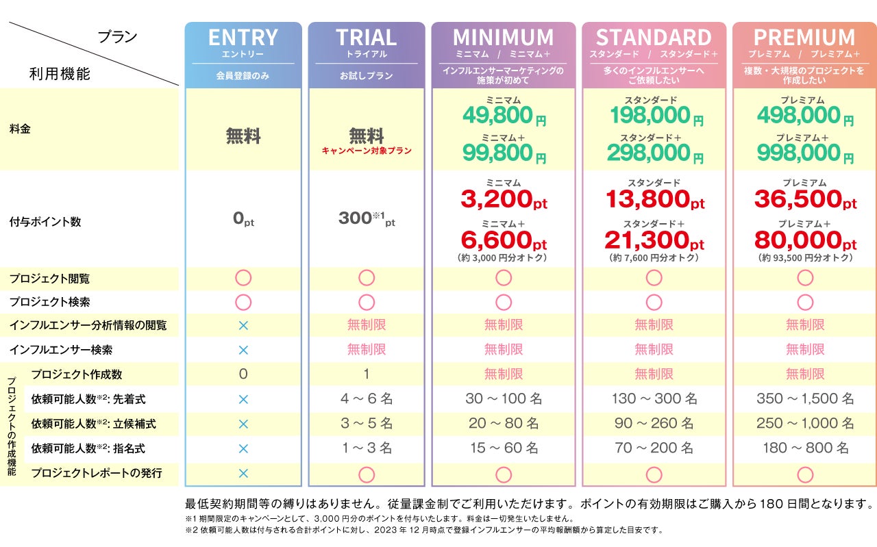 *会員登録は無料/無料会員はプロジェクトの閲覧やインフルエンサー検索(*1)ができます