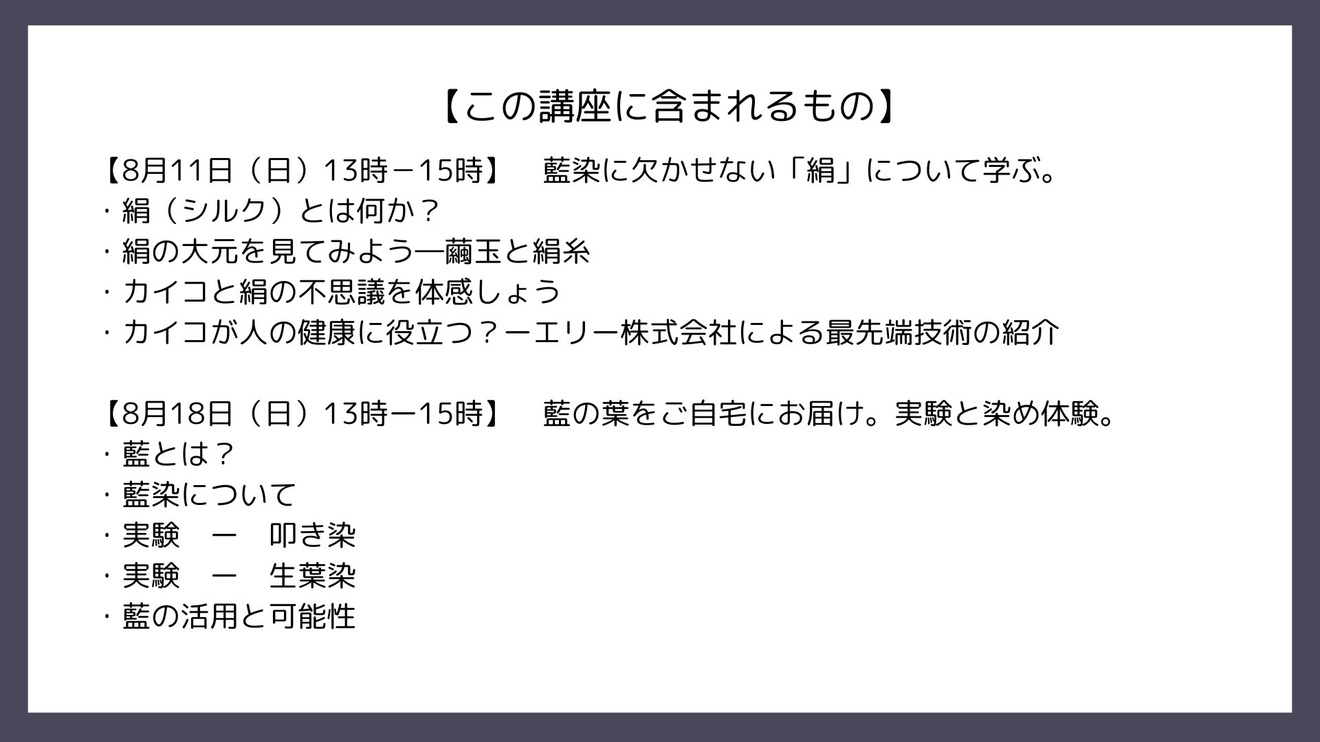【オンライン】日本最高級の藍を使ったサイエンス講座+染め体験講座(限定10名/申し込み期限延長:8月4日(日)23:59)