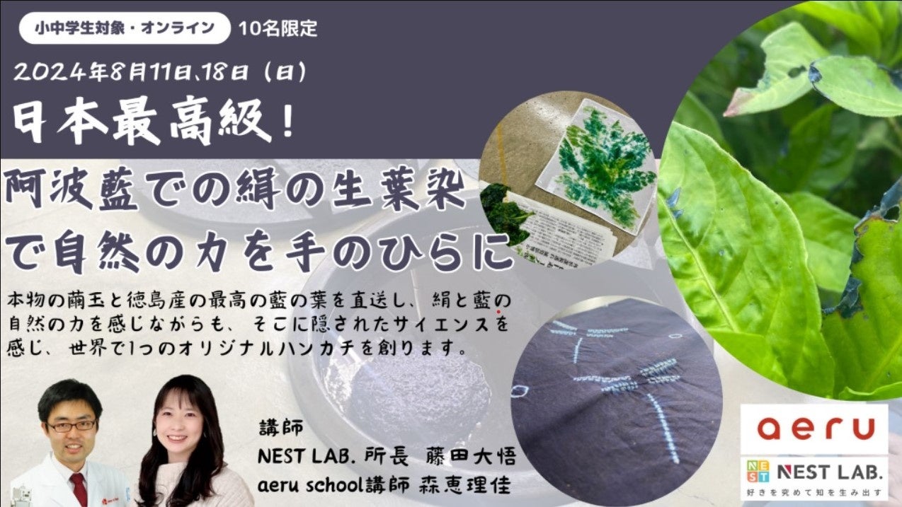 NEST LAB.ではこの夏、夏の特別講座5テーマをご用意し、小学生・中学生のお子さまの夏休みの研究活動を応援しています(イベント案内はこちら)。本企画は、日本の伝統を次世代に伝える「株式会社和える(aeru)」様とのコラボ企画です。
