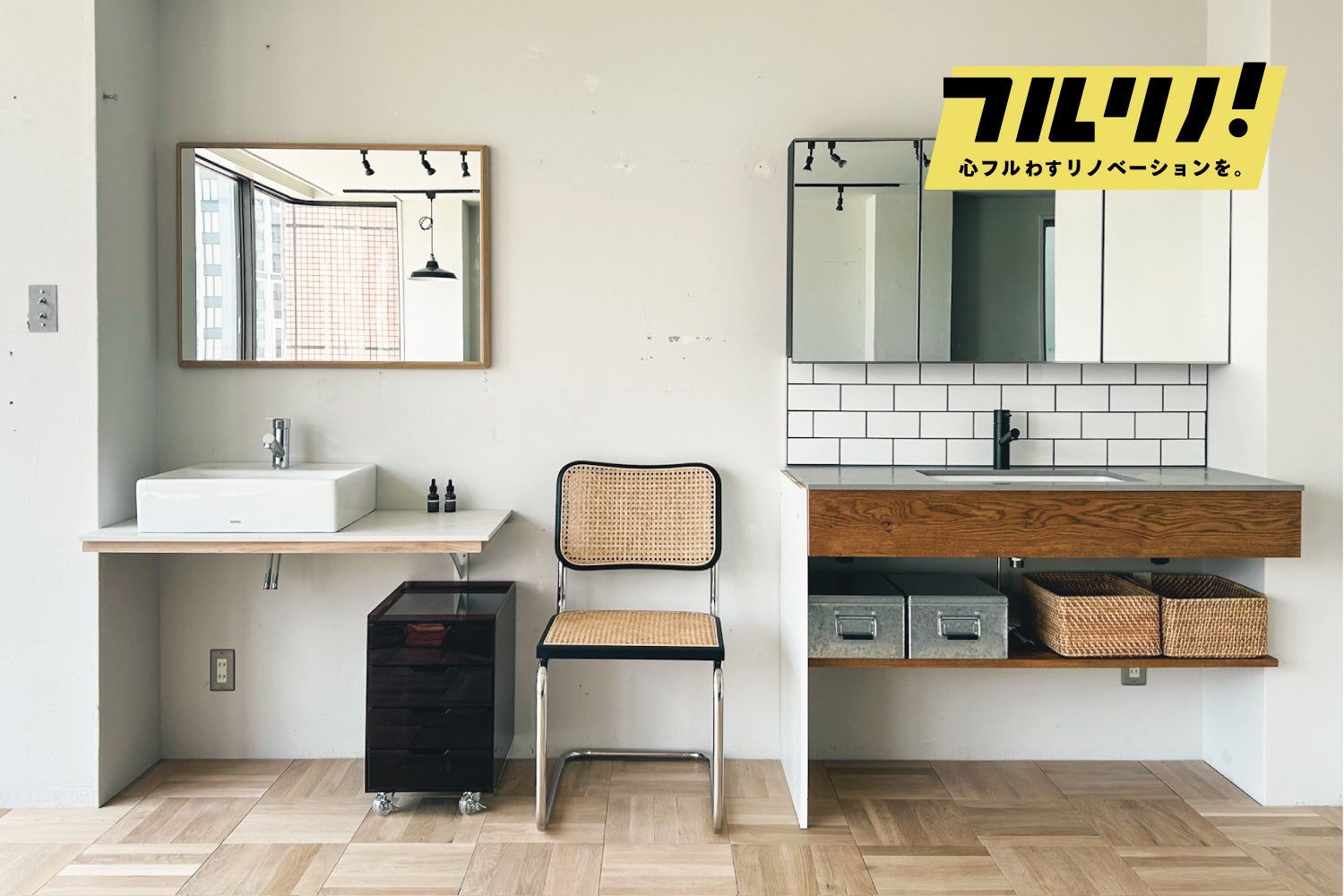展示会では、「フルリノ!」のサービス紹介をするほか、「フルリノ!」に登録しているリノベーション会社が特別価格で購入できる、洗面、タイル、フローリング、照明といった建築資材や住宅設備の展示を行います。セミオーダーでサイズオーダーできる洗面台や、流行を取り入れたデザインのアイテムなど、リノベーションに使いやすい商品を提案します。