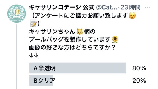 どちらもそれぞれにかわいらしく、商品化にあたっては、キャサリンコテージオフィシャルSNSのフォロワーさんにアンケートをとってみることに。