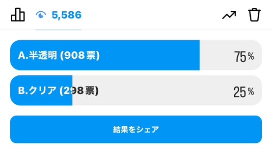 なんと、キャサリンコテージ公式InstagramおよびX(前Twitter)にて実施したアンケートでは、スタッフの予想とは裏腹に「半透明」が圧倒的支持を集める結果となりました。