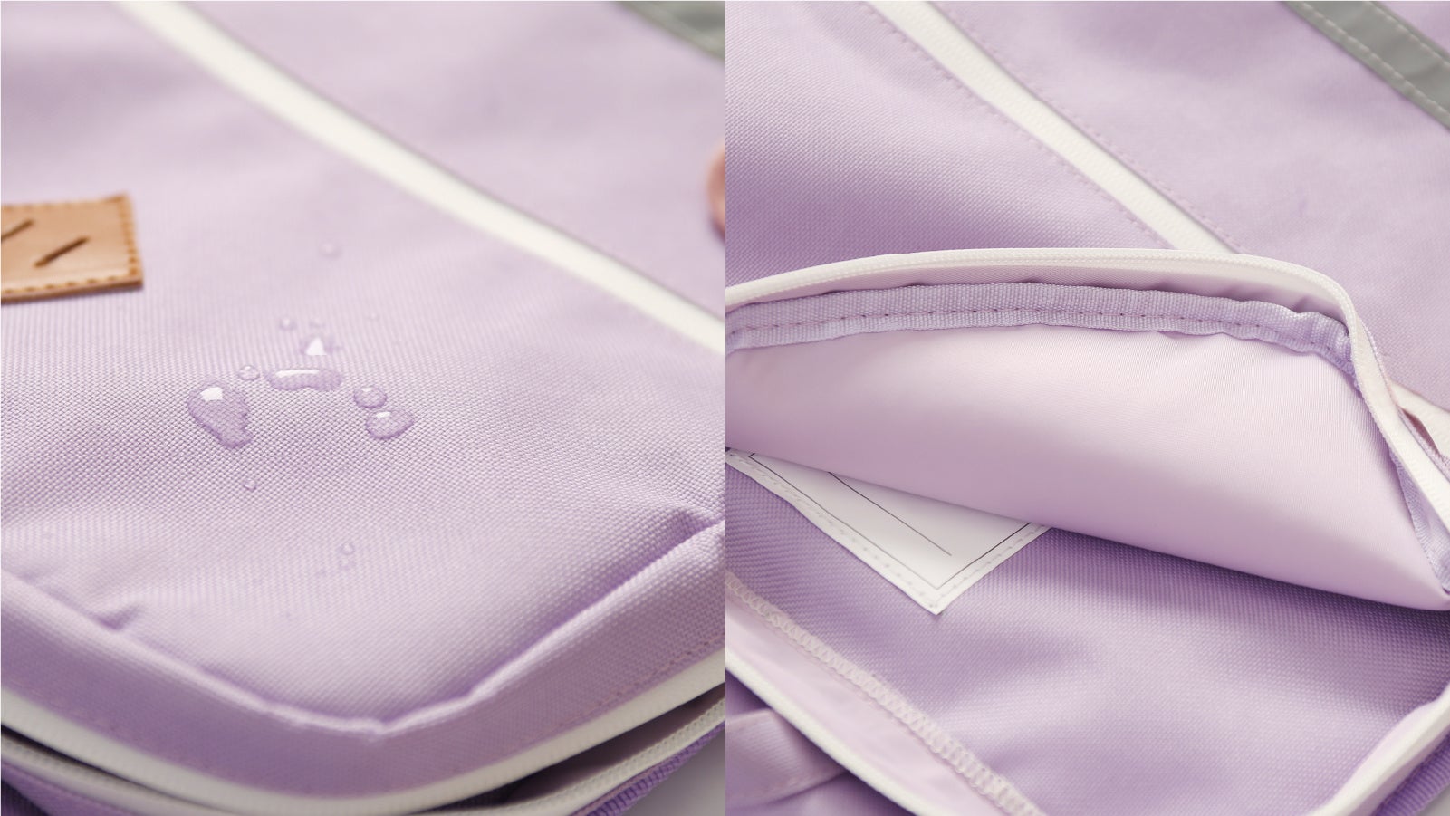 撥水のナイロン素材が、タブレットなど濡れたら困る中身もしっかり守ります。